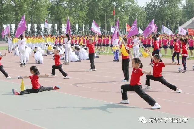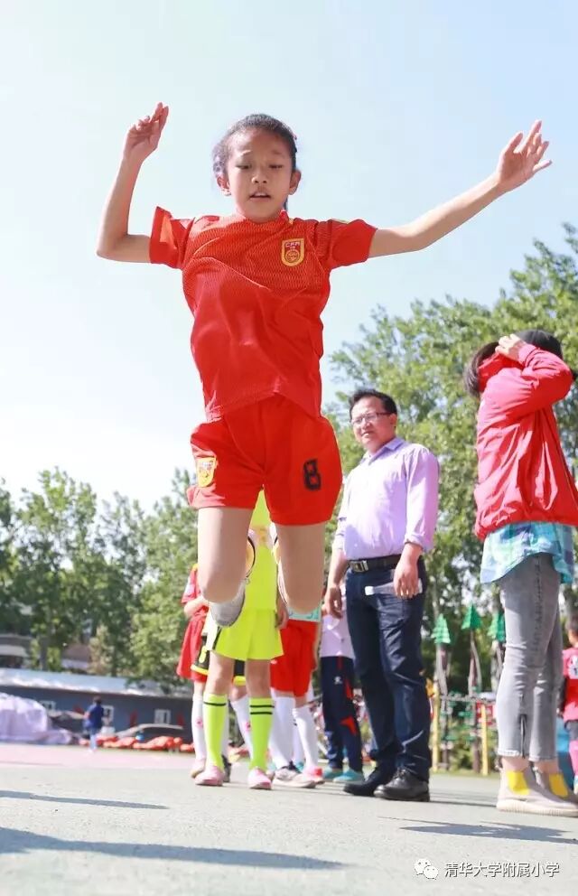 无体育,不清华附小。身体是教育。清华附小始终把“身心健康”放在首要位置。“身心健康”是清华附小五大核心素养之首,学校将体育作为“1+X课程”的核心,提出了“每天体育‘三个一’,健康工作五十年”的体育特色,按照“有趣、出汗、技能、安全”的原则开展体育教育,使体格、人格、价值教育并重。