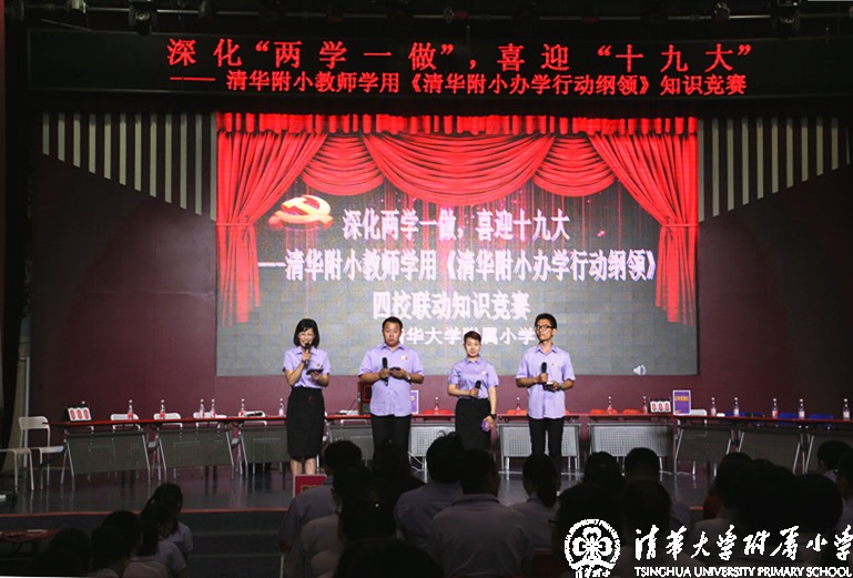 5月26日下午,清华附小教师学用《清华附小办学行动纲领》知识竞赛在本部联盛馆成功举办,来自本部、CBD分校和昌平分校的三支代表队经过激烈角逐,与全校教师一起在《纲领》试题、时政要闻、党的最新会议精神各方面内容的题目中进一步增强了凝聚力和战斗力。
