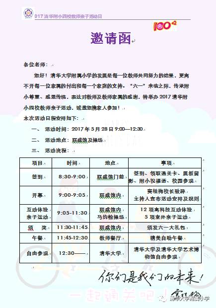 为庆祝即将到来的“六一国际儿童节”,清华附小策划了系列庆祝活动,其中最温馨的活动就是“四校教师亲子活动日”。