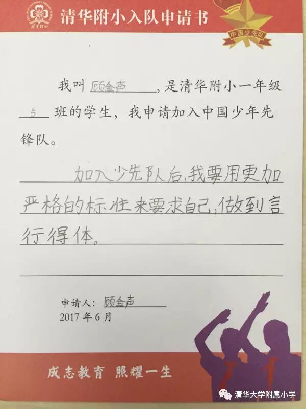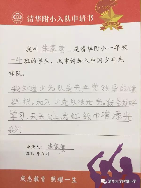 作为清华成志少年,戴上红领巾,我们更应该立志、承志、弘志!让红领巾陪伴着我们,拥有理想与抱负,意志与品质,付出实践与行动,从而实现“成志教育,照耀一生”!