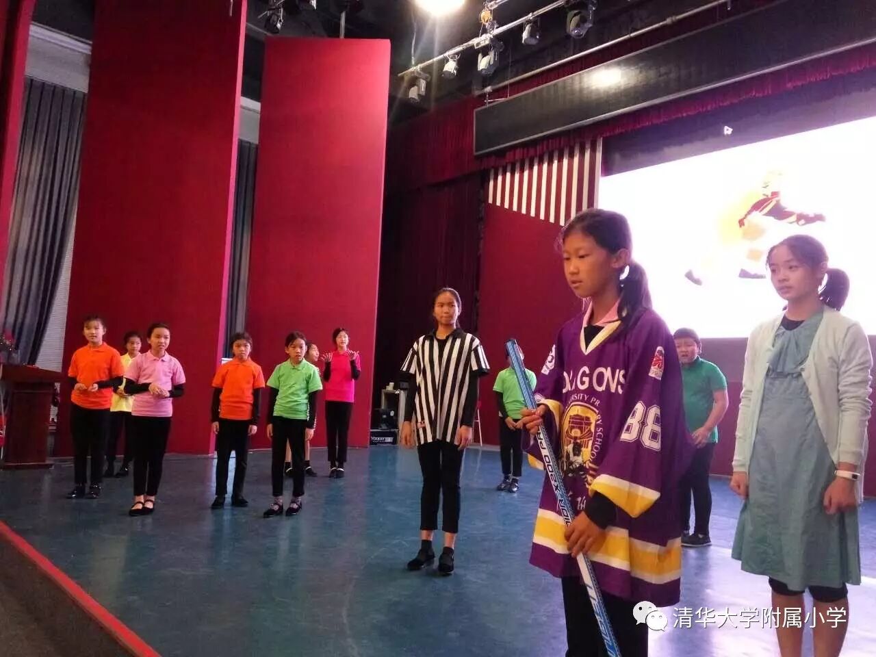 清华附小本部英语戏剧社成立于2014年9月。清华附小培养的是具有中国灵魂,国际视野的现代人,英语戏剧秉承这一宗旨,在剧目的选择上十分谨慎,既要学习经典英文剧目,又要注重中国文化的世界表达,传递中国好故事。三年来,戏剧社的剧目从开始的学习、模仿,到逐渐尝试改编、原创,到如今走向英语戏剧教育的研究,戏剧社的师生都在不断自我实现、超越和突破。由于在英语戏剧教育方面的突出成绩,我校英语戏剧社的老师也受邀在2017“希望中国”青少年英语教育戏剧研究高研班中为来自全国的英语戏剧老师们做培训。