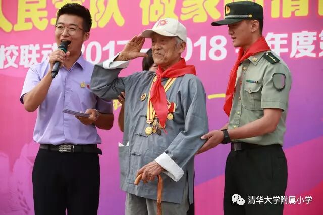 还有,就是读无字之书,亲近中华民族优秀的精神典范,比如爱国主义,比如民族精神。今天,跟我们一起开学的90多岁的翟维俊爷爷,他参加抗日游击队,后加入人民解放军,参加了解放晋南、吕梁和淮海等大型战役,立功十次,负伤三次,至今身上还有多块残留弹片。作为国家英雄,他应邀参加了2015年的天安门阅兵仪式,接受岁月的答谢和祖国的敬礼。