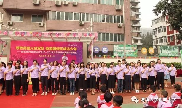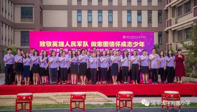看,清华附小的全体老师们已经陆续走上主席台,他们站在你们面前郑重宣誓:我是清华人,努力用敬业、博爱、儒雅成就每一位学生,把每一个学生的成长当做我们的最高荣誉!