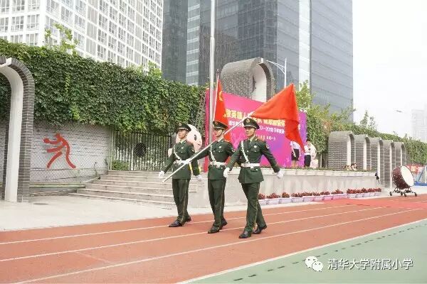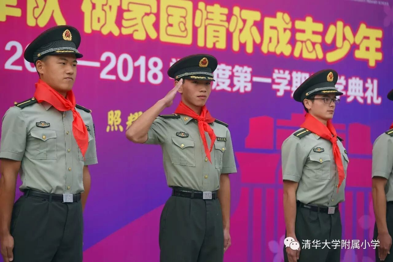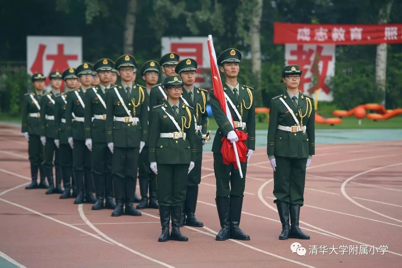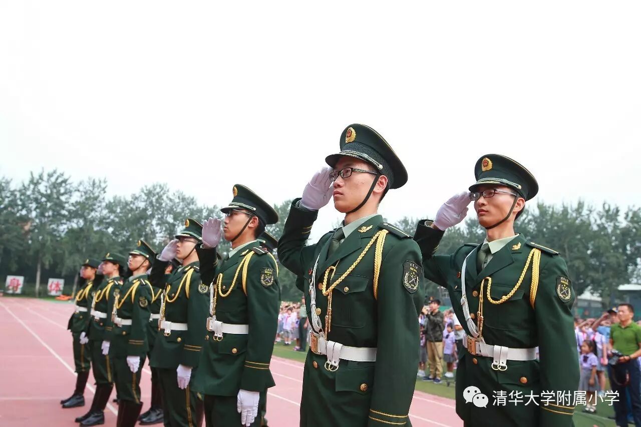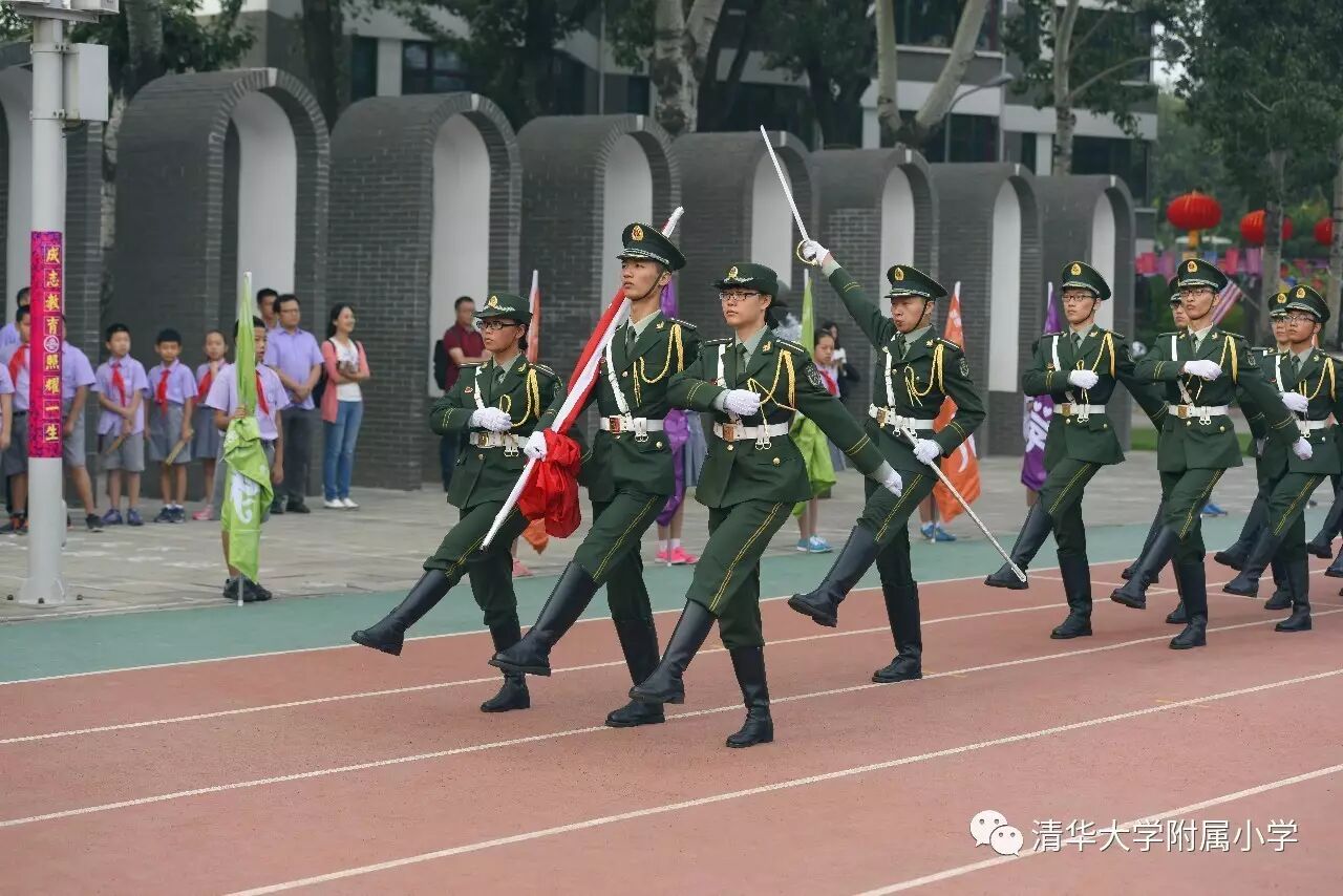 清华大学国旗班的大哥哥大姐姐为我们升起开学的第一面国旗。