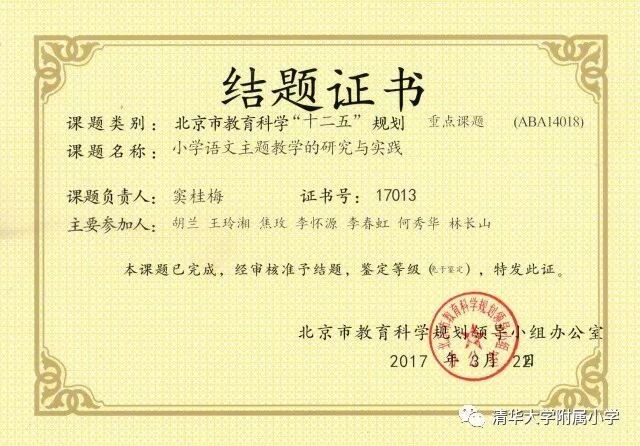 北京市教育科学规划“十三五”课题“小学主题阅读课程深化实践研究”