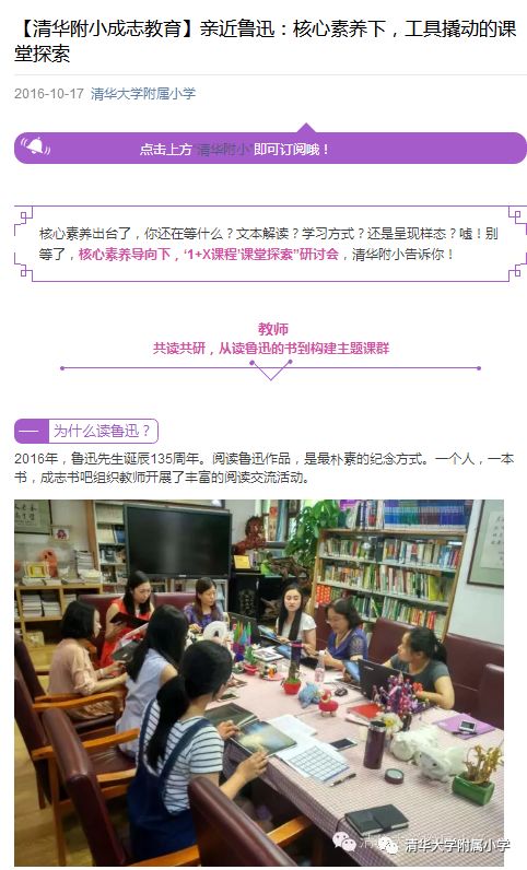 从2007年开始,清华附小探索单篇经典阅读带动整本书阅读教学,挖掘经典的原生价值,生发教学价值。