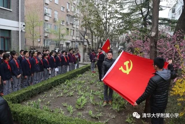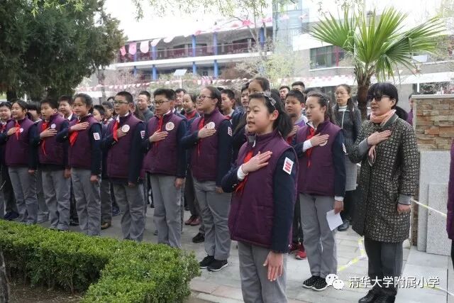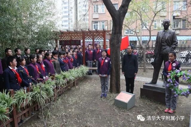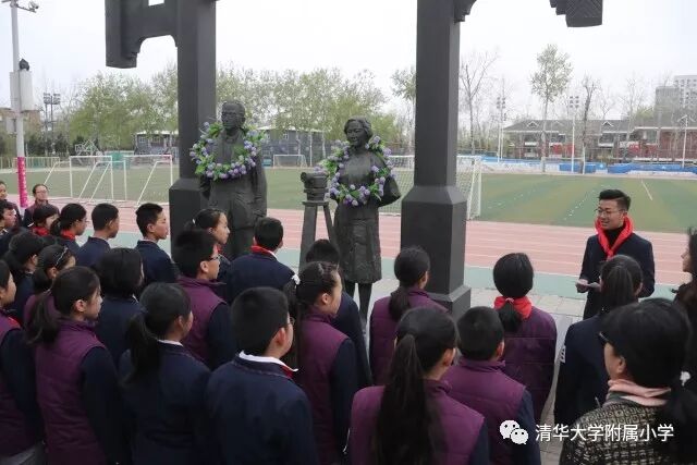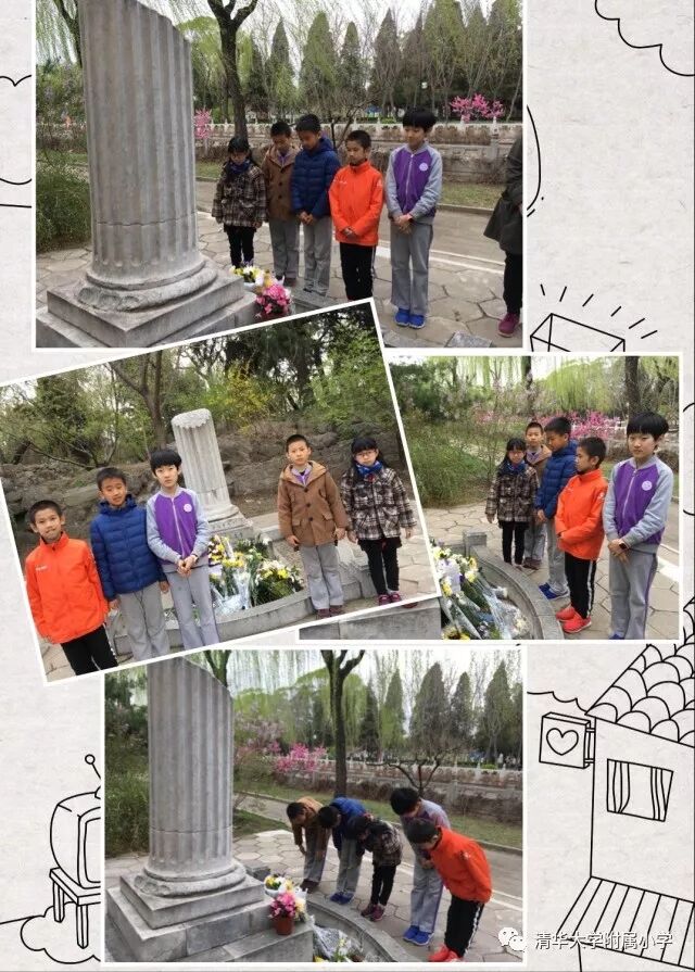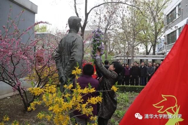4月6日上午,我们少先队员代表和清华附小党总支成员、青年团员代表一起,在校内举行清明节祭拜活动。我们重温了那些为清华大学和清华附小做出突出贡献的先贤的事迹,向雕塑三鞠躬,缅怀先烈和先贤,寄托哀思和敬意。