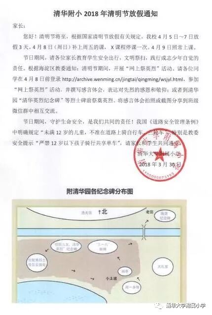 图片:清华附小清明节放假通知(含祭奠路线图)