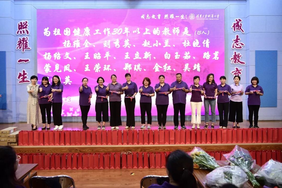 同学们,你们知道吗?25年,30年有多长?同学们,你们知道25年、30年,在人的一生中有多长?今年,又有6名老师已经工作了30年,有3名老师新步入了25年教龄的光荣队伍!为他们颁奖的是走上这个神圣岗位的新教师们!