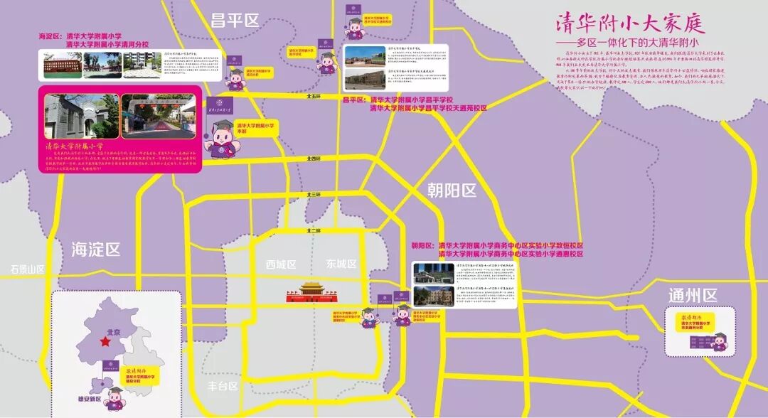 我们响应国家推进优质教育资源辐射,促进教育均衡发展的战略,一体化办学输出优质资源,以清华附小本部为圆心,在北京的地图上绘制了“成志教育”的同心圆。先后在朝阳区、昌平区、海淀区分别成立了清华附小商务中心区实验小学、清华附小昌平学校、清华附小清河分校等多个实体学校,清华附小天通苑校区目前正在筹备之中。