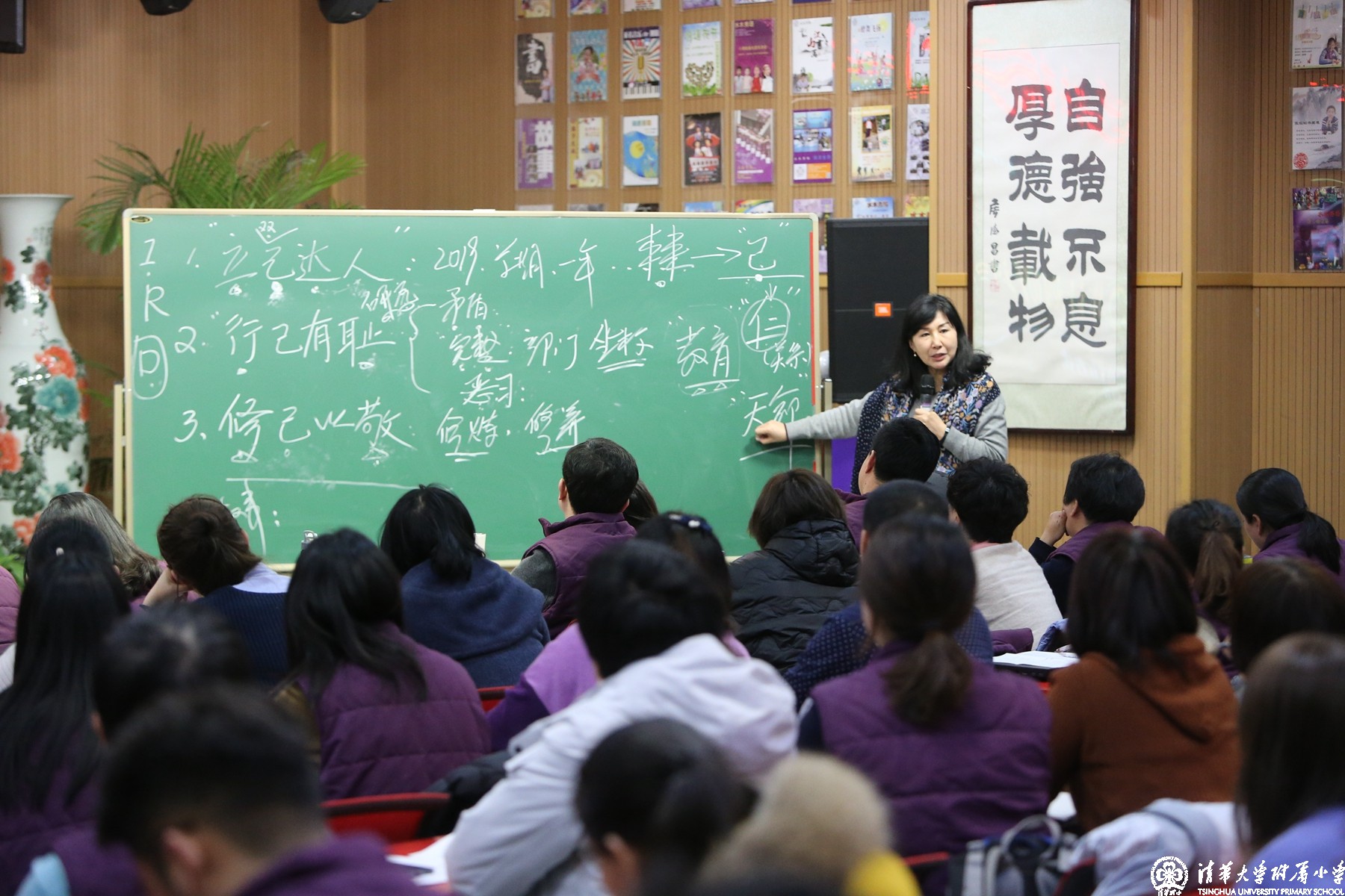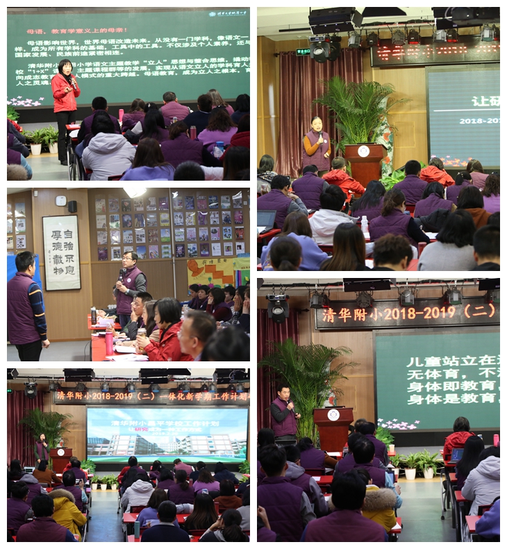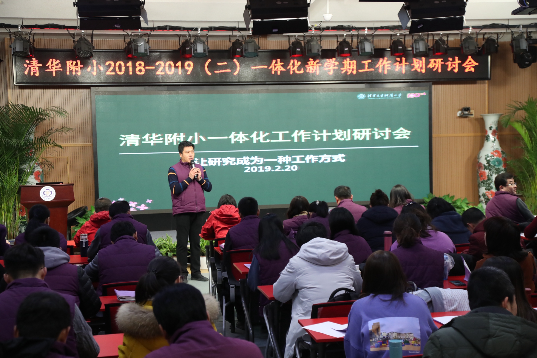 2019年2月20日上午,清华附小2018-2019学年第二学期一体化工作计划研讨会在闻道厅举行,会议主题为“让研究成为一种工作方式”。来自清华附小本部、清华附小商务中心一校区、二校区,清华附小清河学校,清华附小昌平学校的80余位中层以上管理干部及段长齐聚一堂,会议由一体化副校长李军主持。