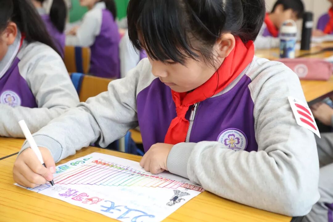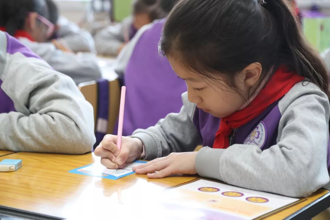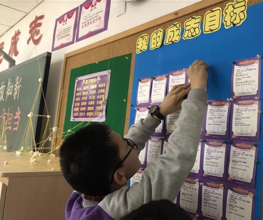 在成志目标卡上郑重写下本学期的“21 天好习惯”目标