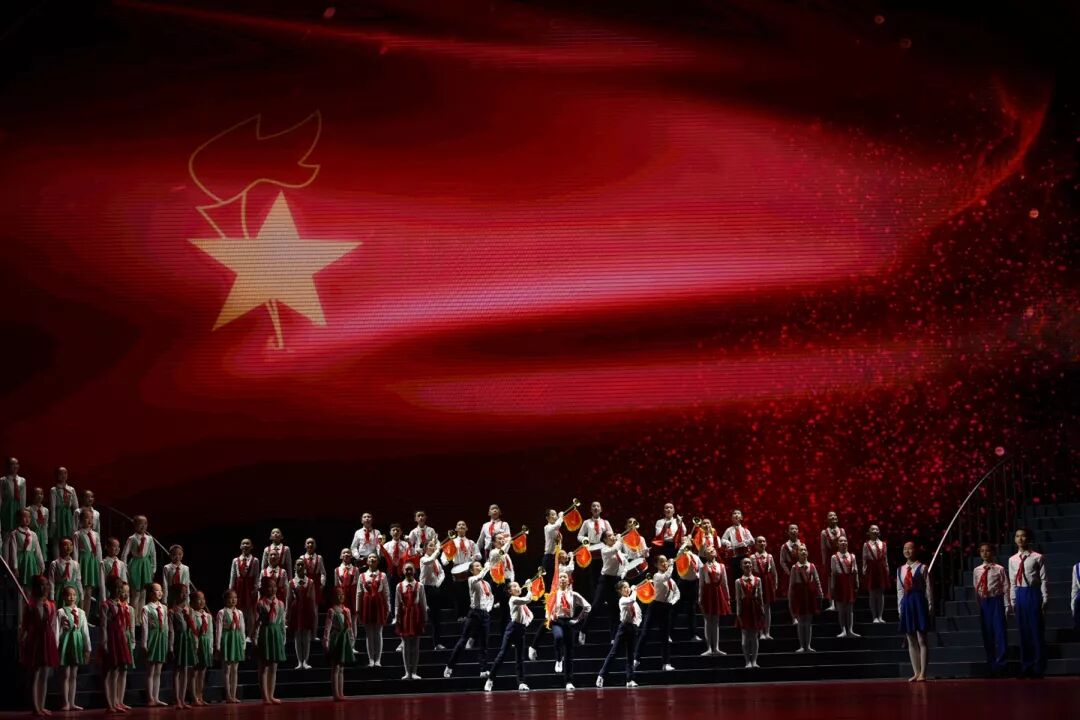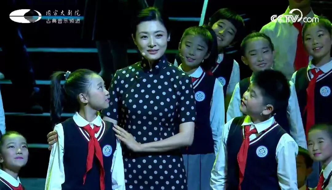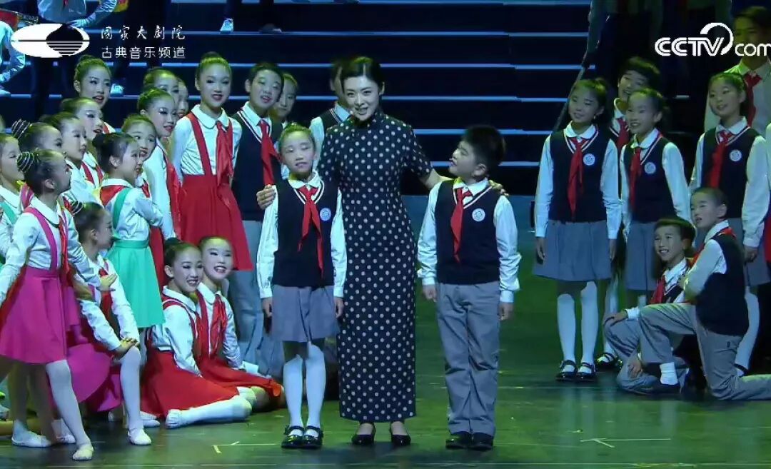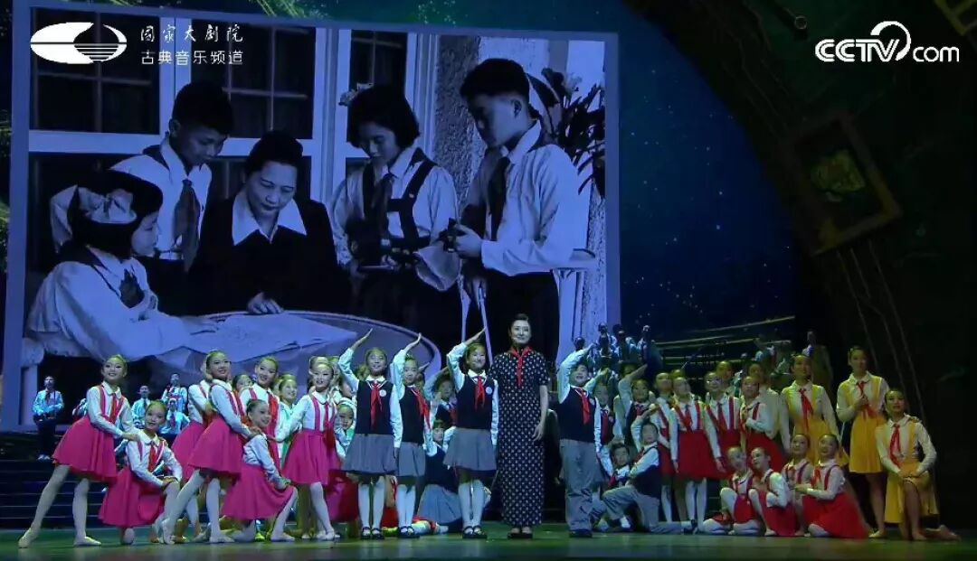 我们在国家大剧院,与周涛扮演的宋庆龄奶奶同台表演第二篇章中的最后一幕《我们是共产主义接班人》。