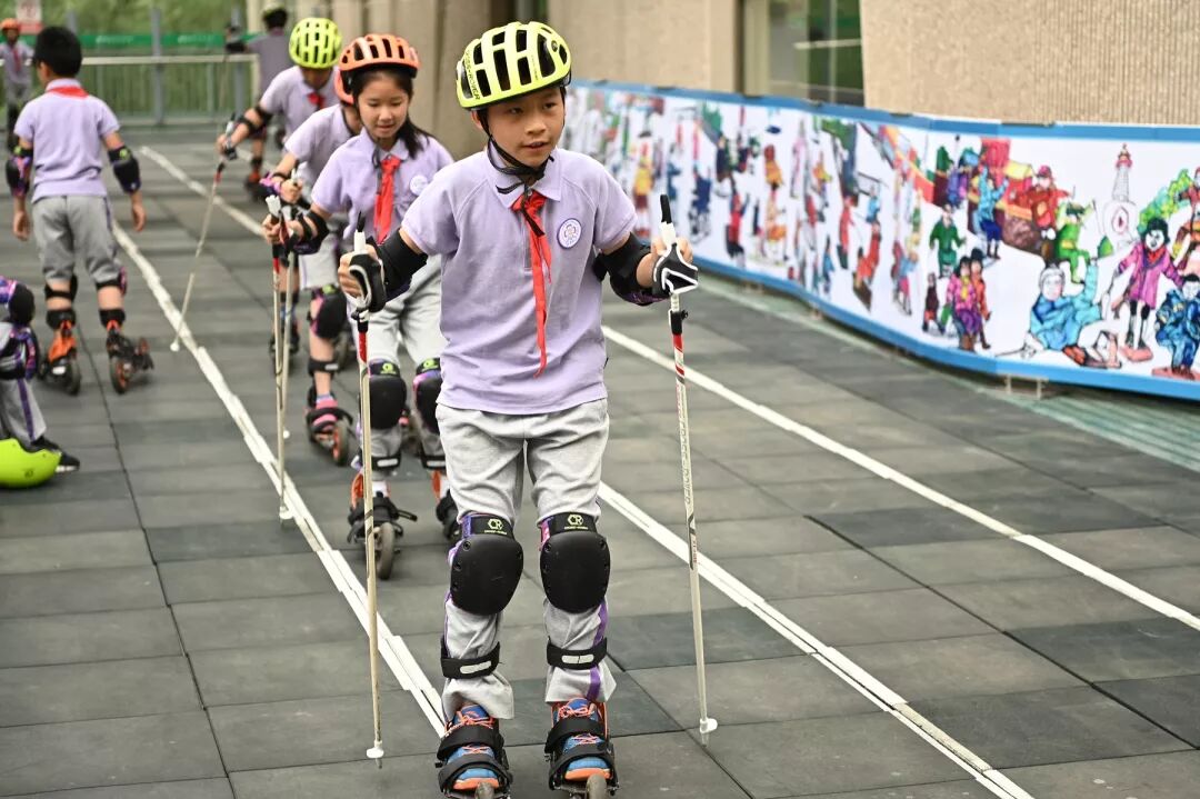 我们练就一身好体魄,在冰雪项目上,在足球场上……立志为祖国健康工作五十年。
