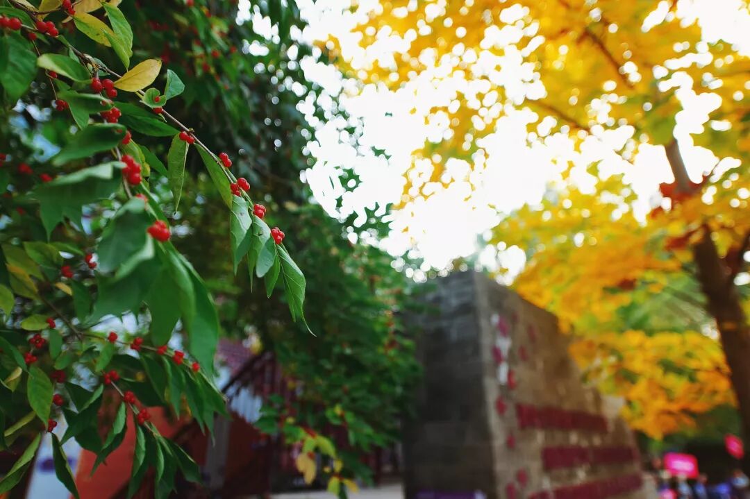 泛黄的银杏,映衬着水洗一般的蓝天