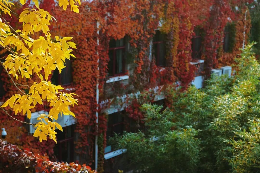 博雅楼前,秋色灿烂缤纷,