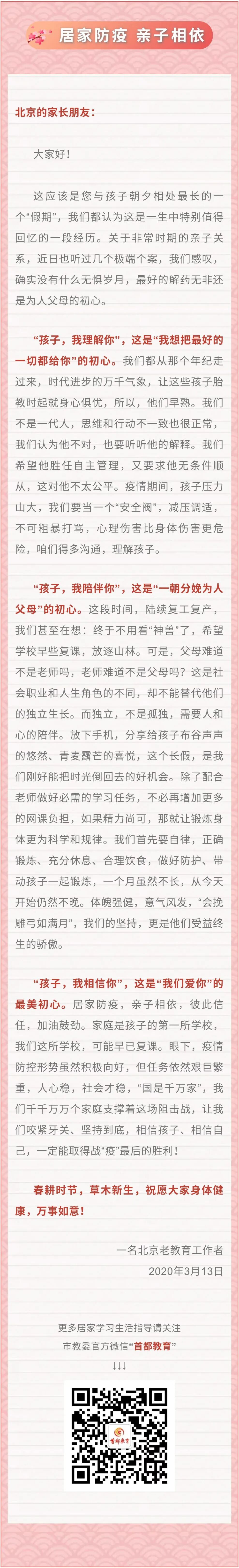 陪伴才有感情。一场疫情,让我们不得不和你们守在家里,倒也有了难得的日日相处的机会,这是我们以前想都不敢想的事情。每天24小时的陪伴,你们又做父母,又做老师。你们带着我们,就好像学校老师们的“助教”一样,根据学校为我们提供的“延期寒假”期间的攻略要求,制定每日《自主学习计划表》,安排我们的学习生活作息。你们带着我们,把我们的书房变成教室,把整个家庭变成了生命教育的场所。此刻,你们变成了落实我们附小“延期寒假”理念的“助教”。