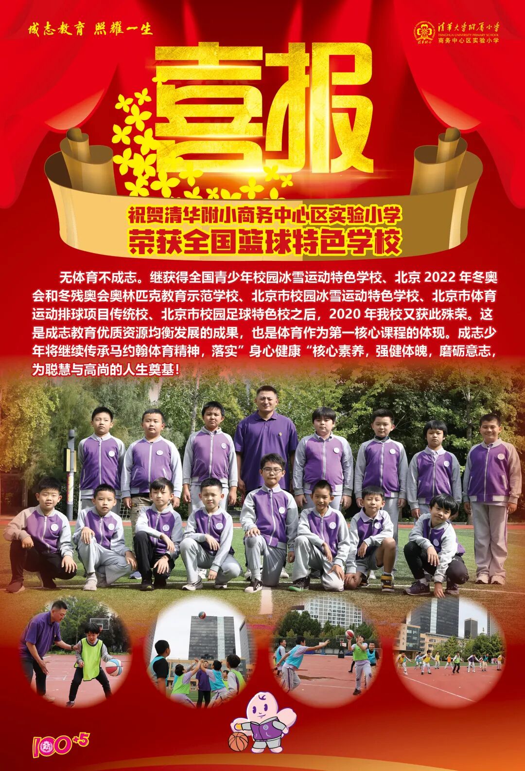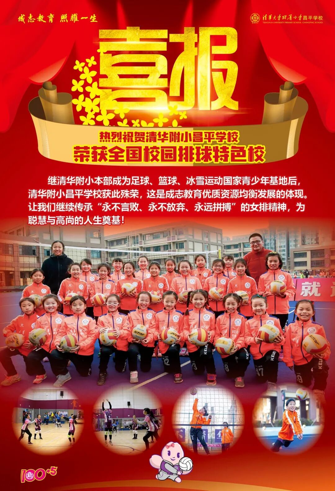 2020年9月捷报频传,在清华附小一体化大家庭中,继本部成为足球、篮球、冰雪项目国家青少年基地,清华附小清河分校羽毛球获得北京市“董炯杯”冠军之后,清华附小昌平学校荣获“全国青少年校园排球特色学校”、清华附小商务中心区实验小学荣获“全国青少年校园篮球特色学校”称号,体育一直是成志教育一体化优质资源均衡发展的重要途经。
