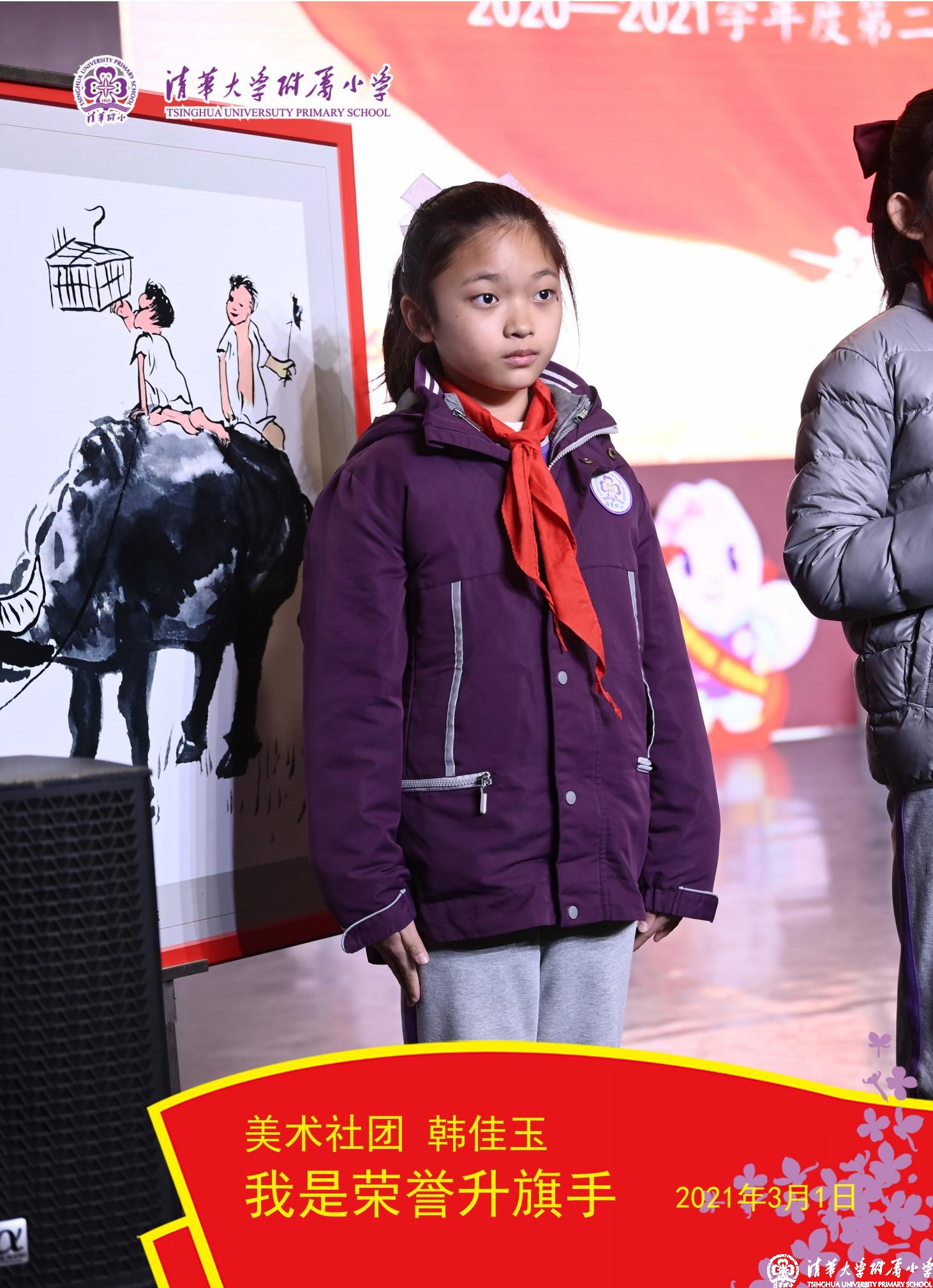 传承传统文化,做有根的中国人。韩佳玉同学5岁开始学画,每周坚持10至12小时的绘画练习,牛年新春,她专门绘制了生肖牛主题的国画,用一品好审美传播中华优秀传统文化,为中国共产党建党100周年献礼。让我们向她学习,争当成志荣誉升旗手。