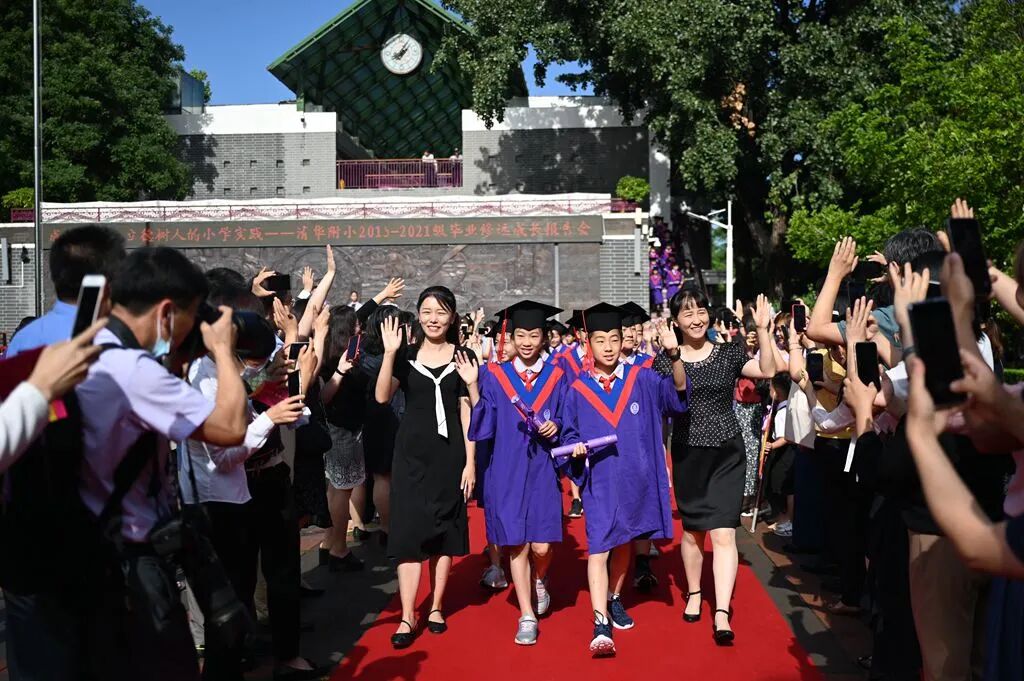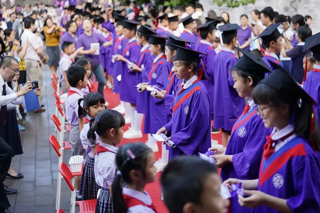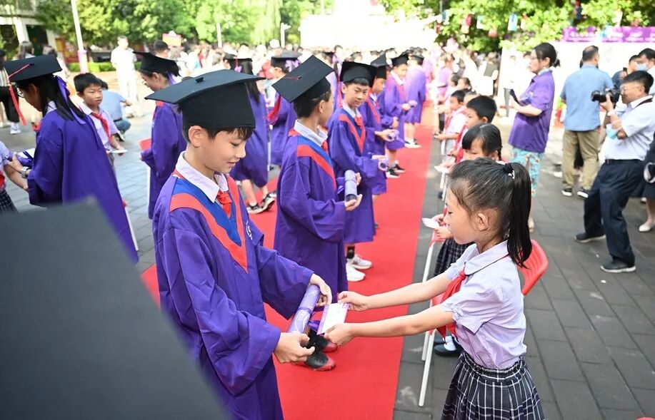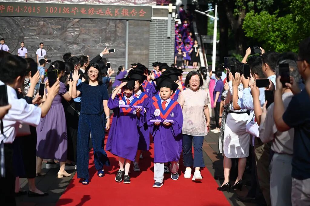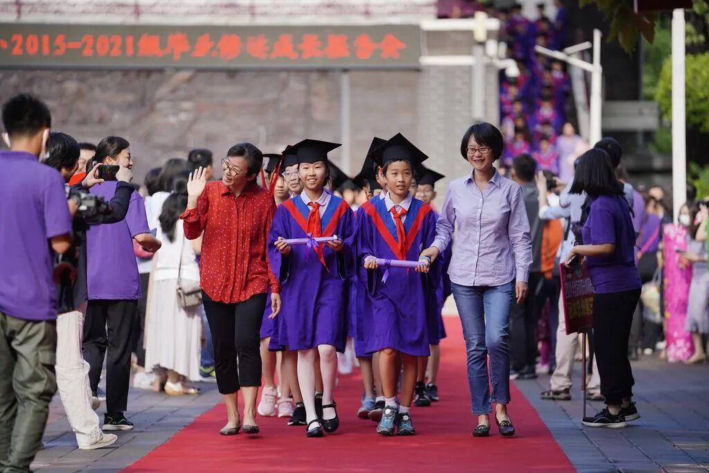 看,他们最后一次在班主任老师的带领下,走过长长的红毯,展开6年的童年画卷,见证自己成长的足迹。