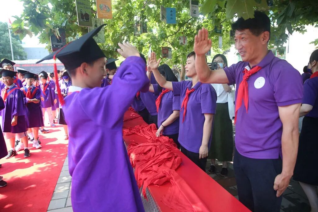 最后一次接受亲爱的老师为大家佩戴红领巾,带着谆谆嘱托、带着欢笑、带着不舍、带着对童年的美好回忆,走向成志大道,再次出发。