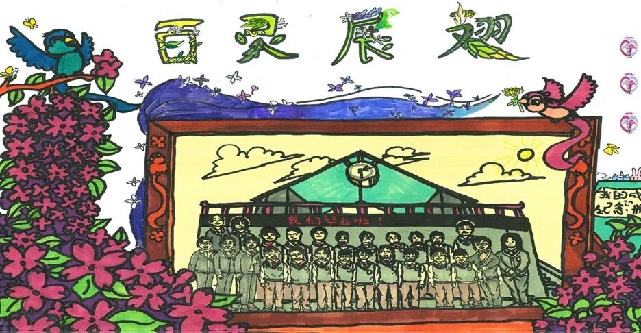 二班的马克笔描绘了六年的学习生活画卷,写生留住了校园的美;