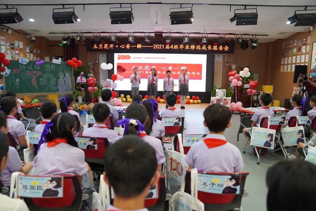 “玉兰花开,心香一瓣”是4班六年毕业修远成长报告会的主题,全学科的作品和成长的勋章,展示着六年来的“全面而个性”“个性而全面”的 “自强·创新”的班级精神。同学们梳理了六年来经历的关键事件、在戏剧中仰望自强不息的清华精神、回顾附小六年的培养,畅想未来,梦想着2035自己的模样!
