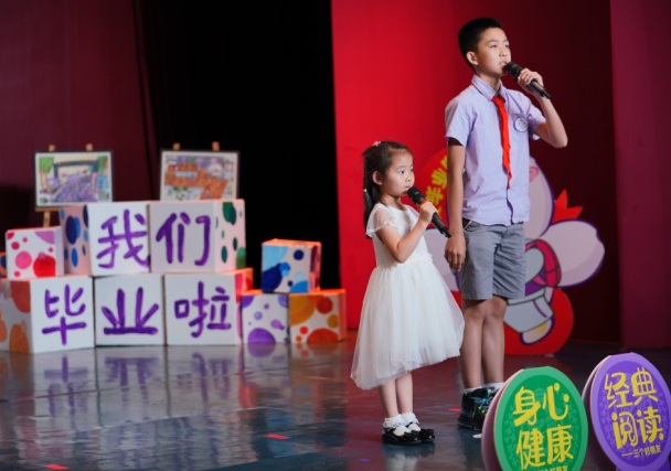 同学们从校长的手中郑重地接过毕业证书,这是童年的印证,岁月的音符。