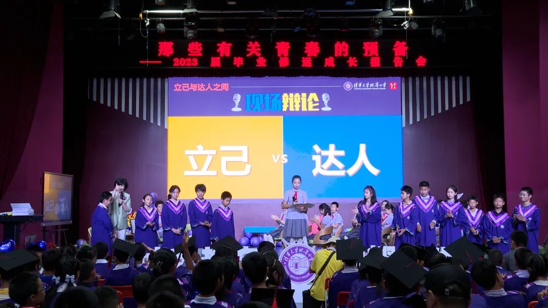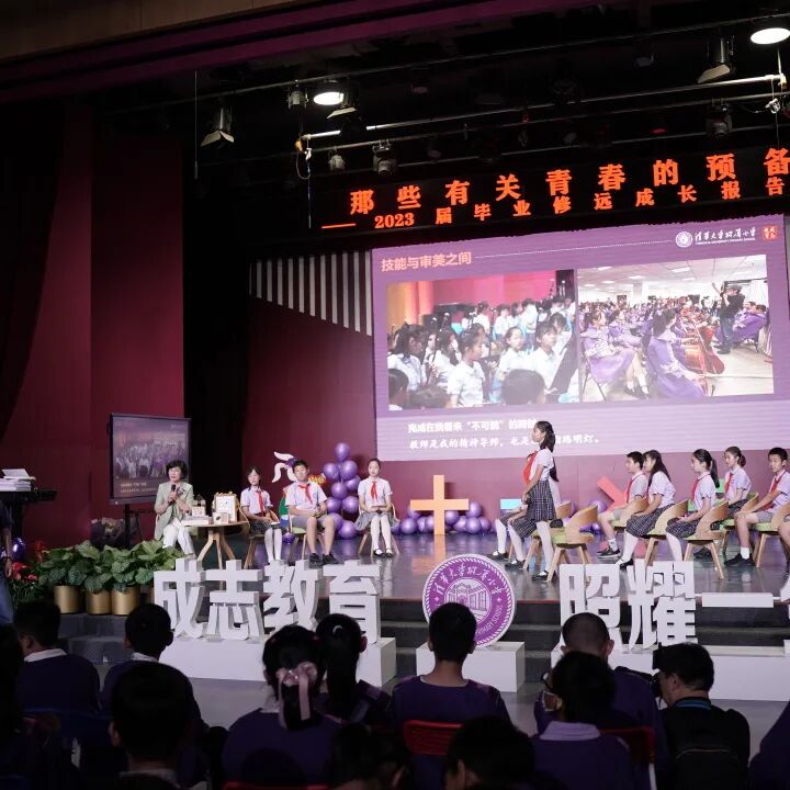 清华大学附属小学2023届毕业典礼于2023年7月1日举行,共有352位同学参加。与往届不同,窦校长特邀36位毕业生代表上台,并与3位毕业生小主持人和即将入学的一年级新生孙耀阳、一年级学生丁香、五年级学生戴启轩、初三、高三返校的学生,以及家委会主席、清华附中的教师代表共同完成了这堂“致青春的第一课”。