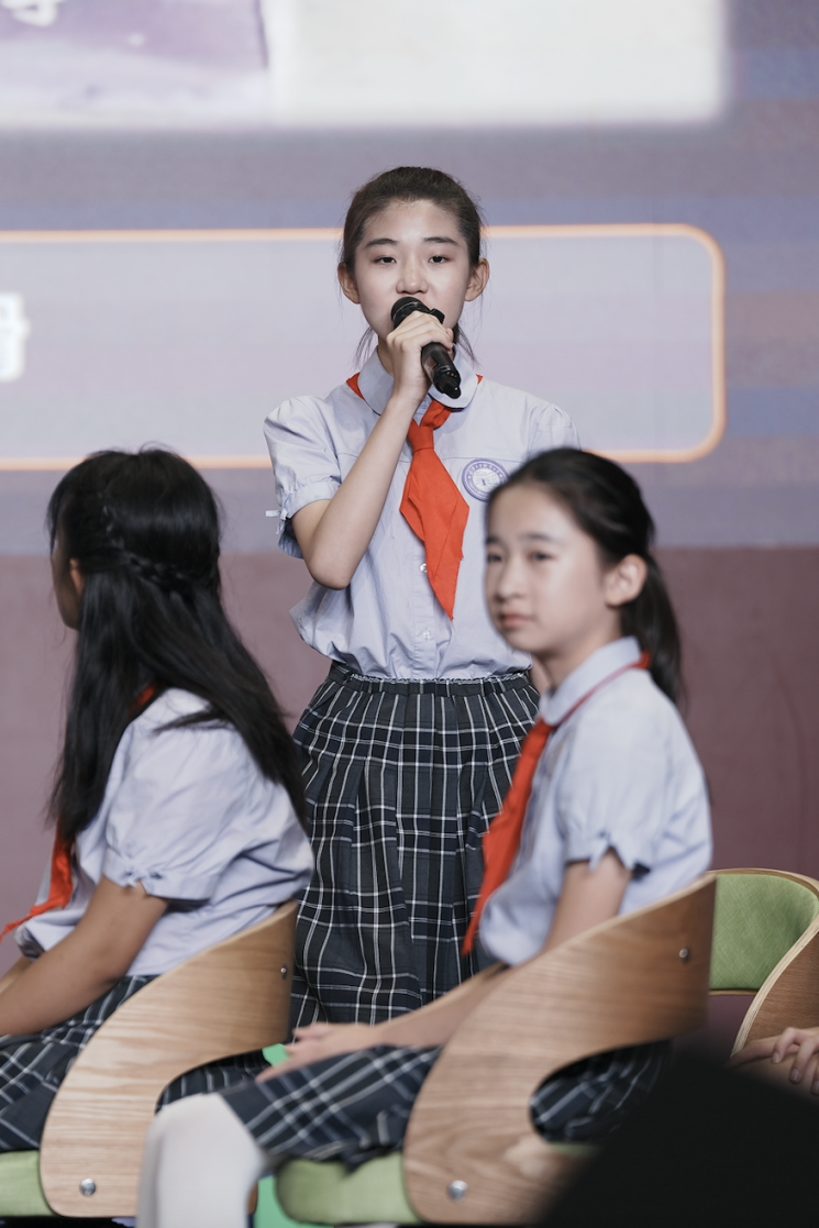 六2班的朱思诚同学一年级就因观看校史剧《丁香花开》对戏剧产生了浓厚兴趣,直到四年级才成功入选戏剧社团。六年级学业任务增多,朱思诚甚至不惜与妈妈达成了严苛的约法三章,“用每天认真完成学习任务换来继续参加社团的可能。”最终,他和小伙伴们出色地完成了社团的年度汇报演出,这也成为了他小学阶段最珍贵的记忆。他理解的审美是“内驱”,通过自我驱动实现个人志趣。