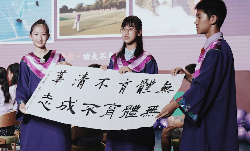 2017年,入学时的情景吧?在以“为中华之崛起而读书”为主题的开学典礼上,你们第一次将右手放在胸前庄严宣誓:我是清华成志少年,努力成为健康、阳光、乐学,拥有中国灵魂、国际视野的现代人。