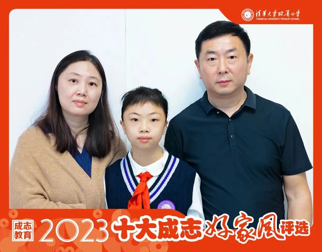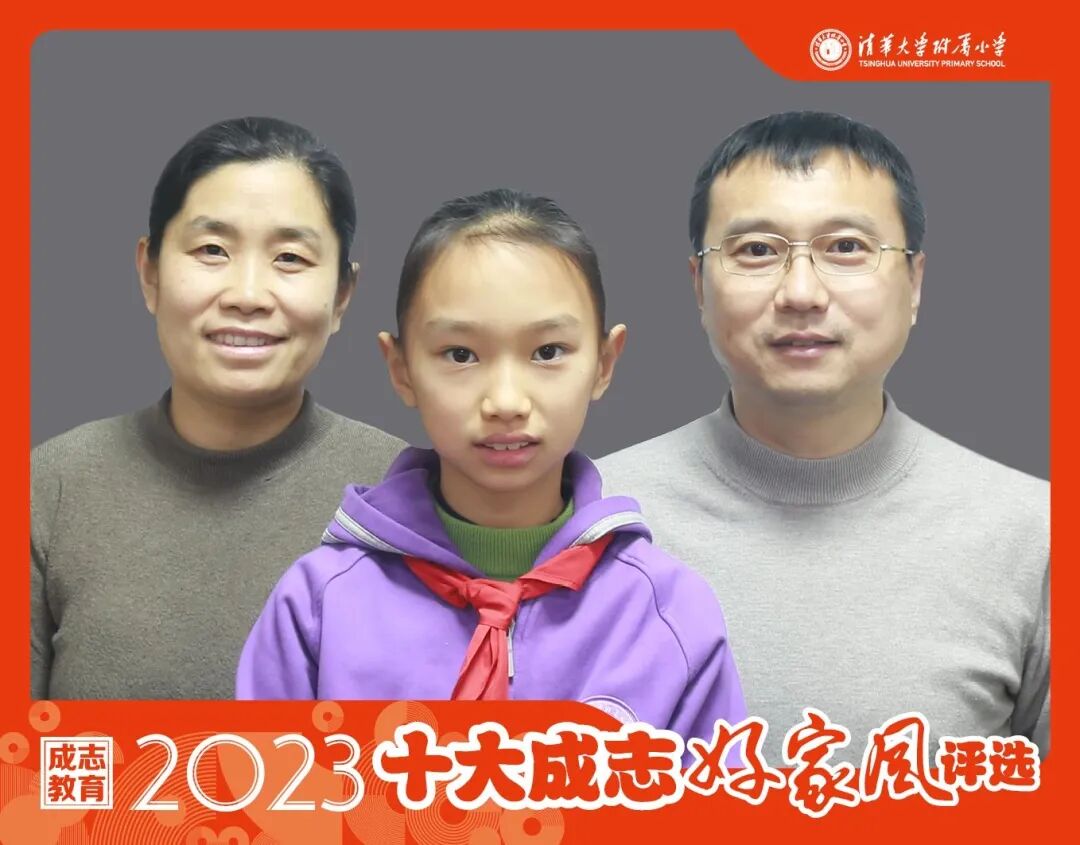 作为清华双职工的父母,对于孩子和家庭来说,陪伴与守护显得尤为珍贵。但我们一家三口从一年级开始便是“学习小组”的最佳搭档,妈妈会和她一起背诵课文、探讨《论语》中的“‘敏而好学’何为‘敏’”;爸爸会和她一起做计算题并研讨方程的多种解法,以学兴家,让我们彼此成长共同进步。未来,相信我们会在坚持与自我超越中稳稳地成志,让我们的好家风永远熠熠生辉。