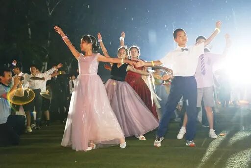 夜晚的马约翰操场从运动场变为舞池,我们用集体舞打开青春的美好。我们盛装出席,男生女生郑重拉起手,灯光亮起,音乐响起,我们走上舞台正中央……