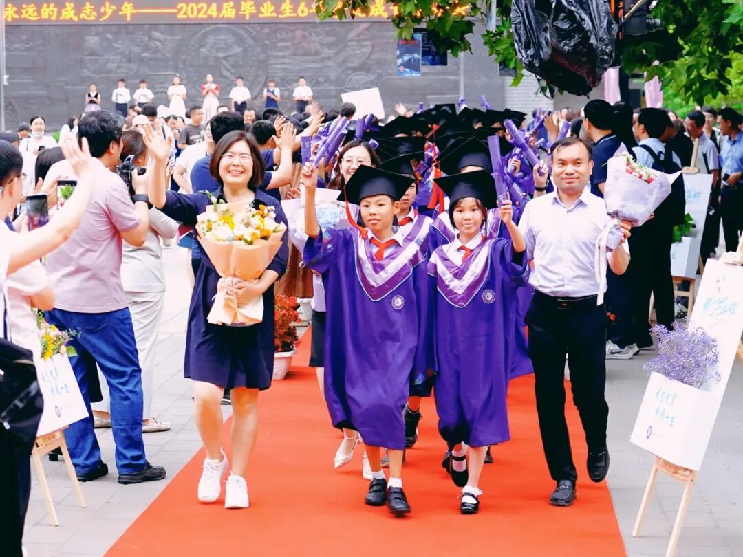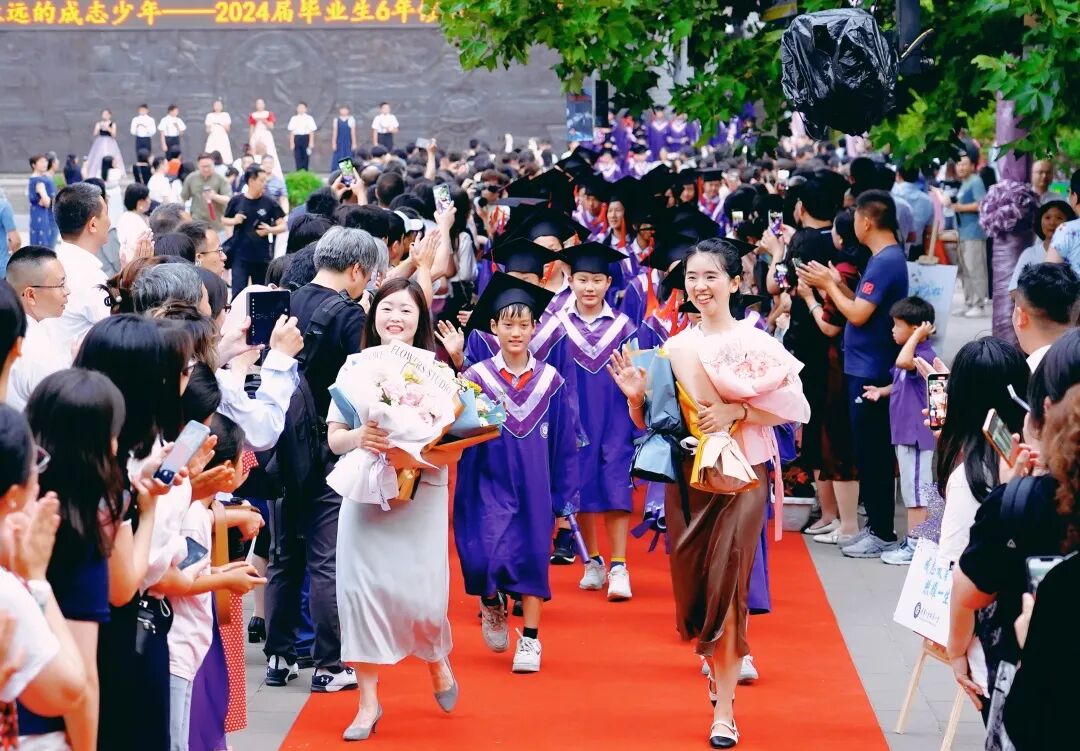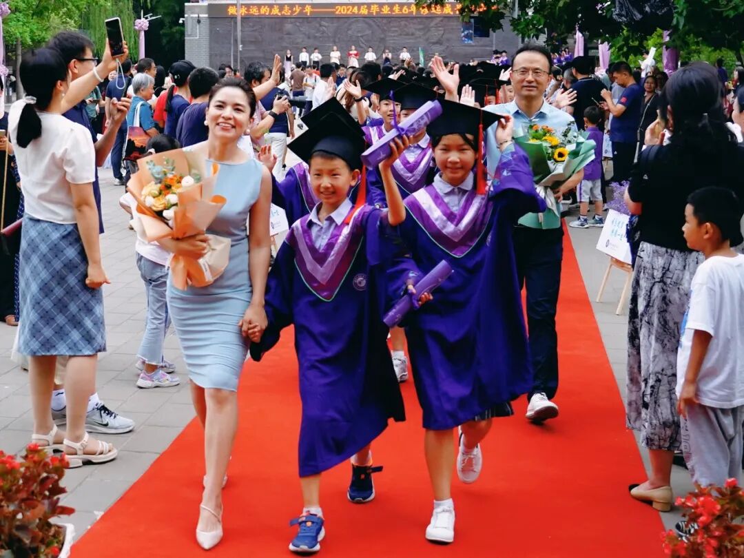 我们是毕业典礼的主角,与老师们相伴走过长长的红毯,展开6年的童年画卷,见证成长的足迹。