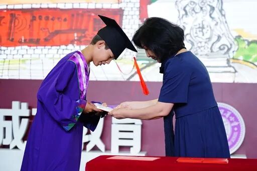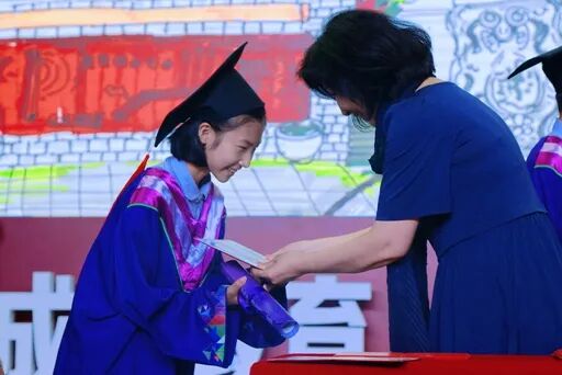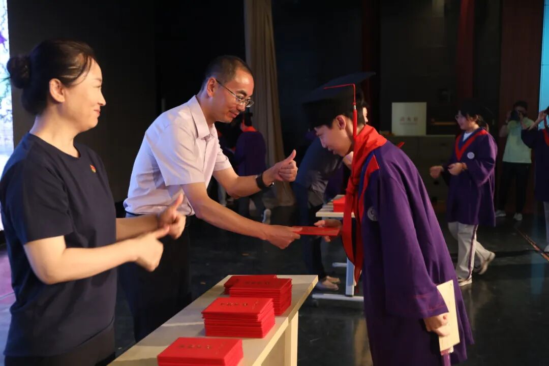 窦老师为每一位毕业生颁发毕业证书,我们在师生郑重的鞠躬礼中完成成长的进阶!