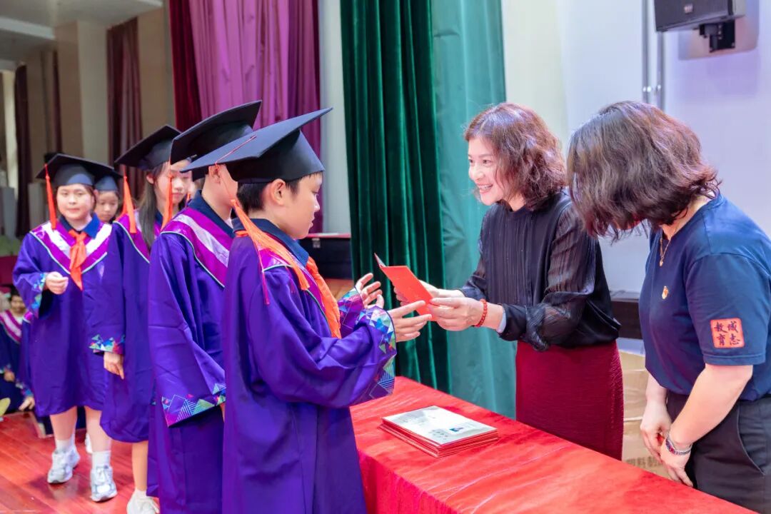 为全体学生颁发“十个一”素养目标优秀毕业生奖状,共同见证六年实际获得。