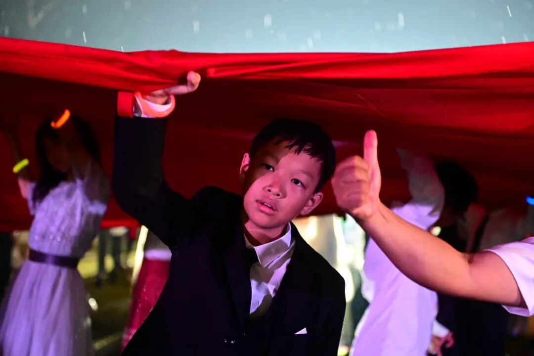 这个特别的夜晚下起淅沥小雨,我们脸上是洗去炎热的雨水,是激励奋斗的汗水,也是依依惜别的泪水。这场雨打湿了童年,定格了成志少年,寓意着成志少年们既能战风斗雨,也能风雨同舟,更有能为他人遮风挡雨的担当。