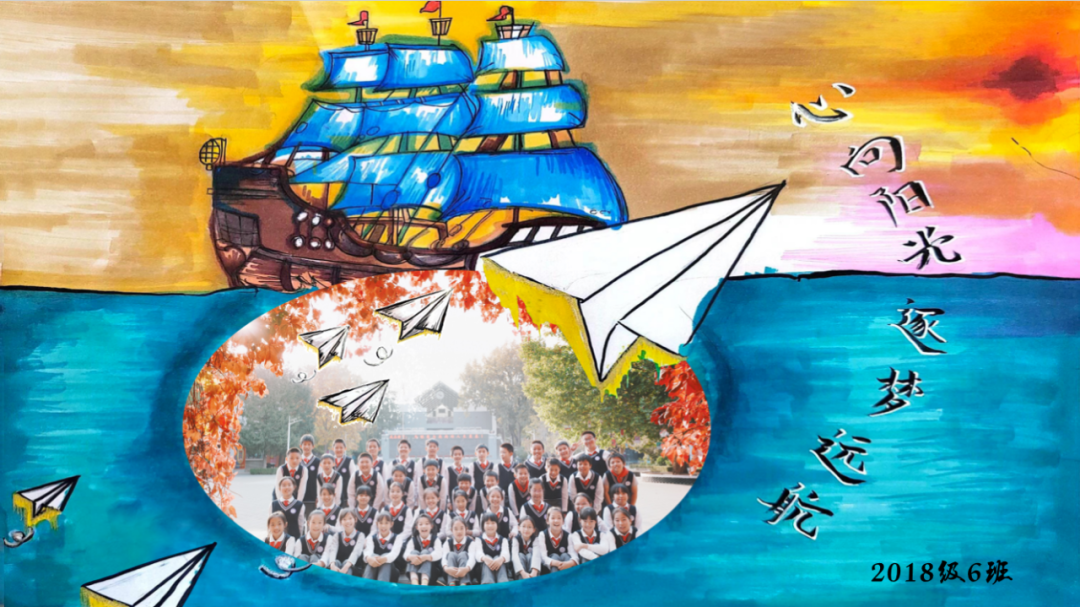 水手,是远航的主人;水手,是风浪的御士;水手,是探索的勇者。小水手,是2018级6班的名字。充满童趣的班徽,伴随着积极团结、勇敢坚毅的孩子们,从懵懂儿童走向青春少年。一页页航海手册,记录着小水手们的茁壮成长。看,潮起潮落,海涛在无尽的时光中谱写新的篇章,流向远方,小水手们将继续乘风破浪,逐梦远航!“长风破浪会有时,直挂云帆济沧海。”同学们将驾驶6班这艘大船,共同驶向更美好的未来!