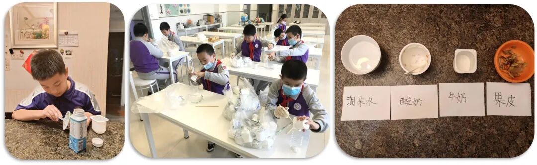 在一日学校生活中,清河分校刘梓宣同学发现“同学们喝完的酸奶盒中总会有吸不干净的酸奶,存在浪费现象。那这些残留的酸奶能不能变废为宝呢?”他将残留的酸奶收集起来,制作成有机肥,应用到学校的乐学种植园和家庭的花草中,观察其对植物生长的效果,并分享给其他同学和家长,让更多人了解到他的环保行动及环保的意义。