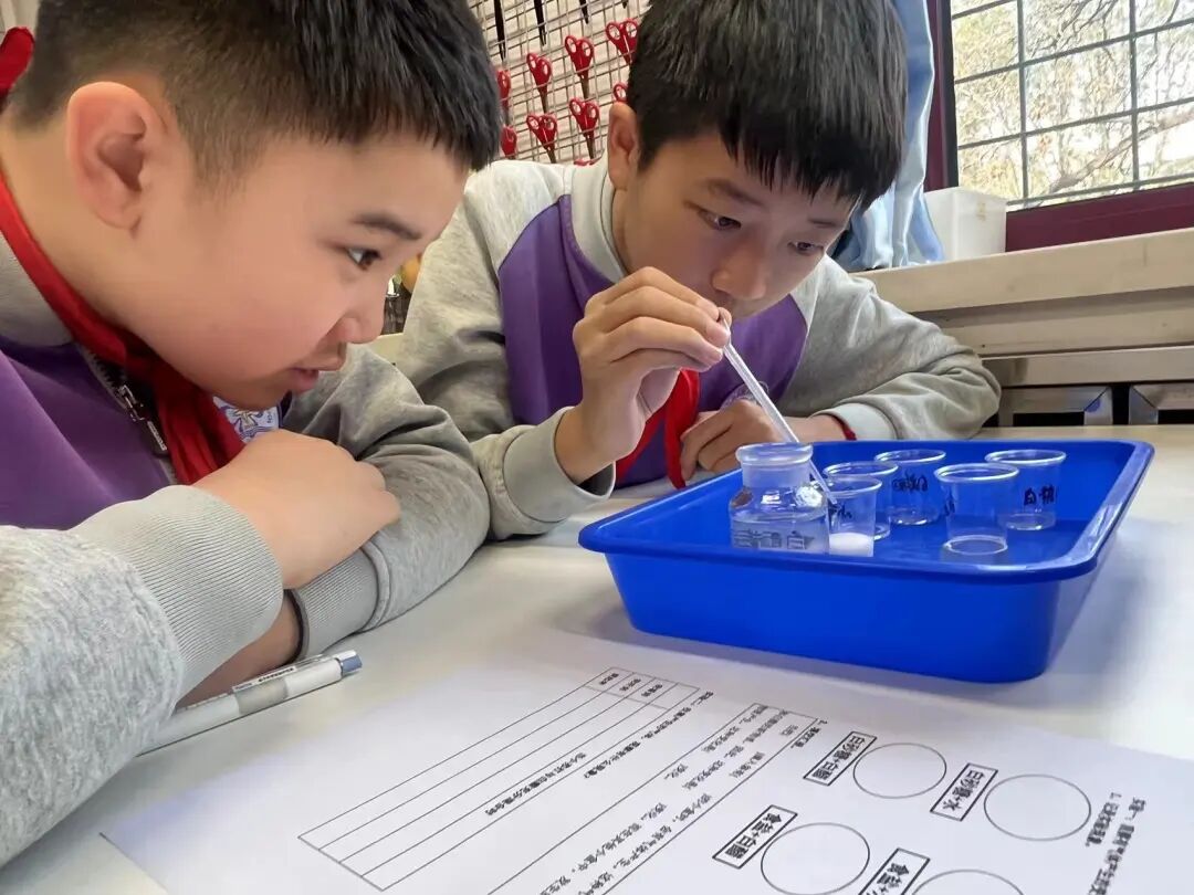 我们在实验探究中感受化学的魅力。我们通过不同物质与水和白醋的混合实验,利用感官进行仔细观察,根据实验现象运用证据判断物质发生了什么变化。