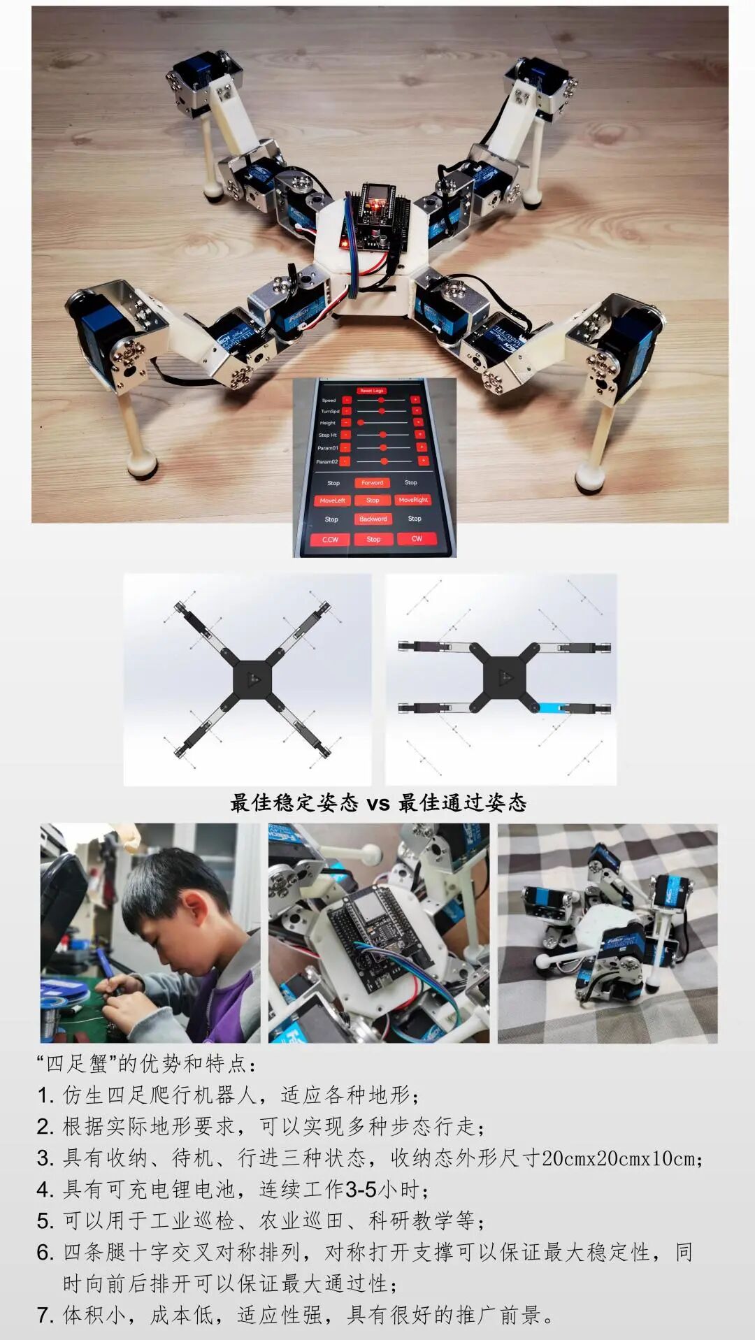 六年级的大哥哥利用AI技术设计并制作仿生爬行机器人“四足蟹”。