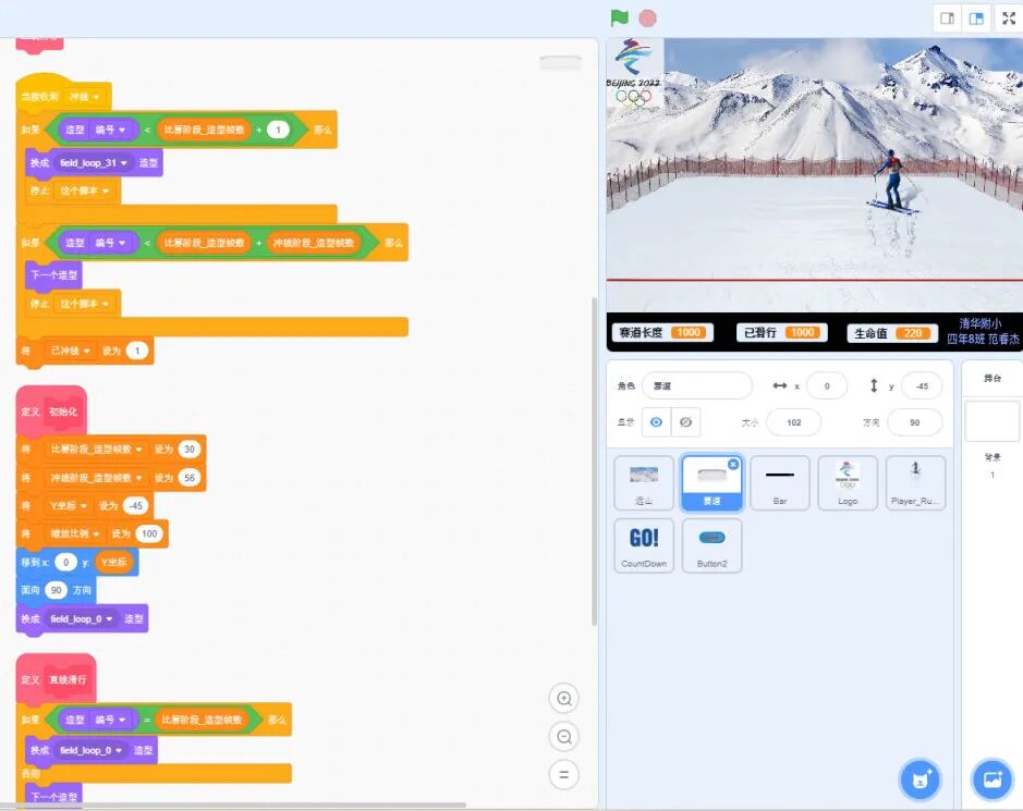 我们关注社会热点,在北京冬奥会的激励下,用编程和算法设计了冬奥会高山滑雪小游戏,在虚拟世界中重温激动人心的比赛瞬间,体验滑雪运动员在雪道上飞驰的速度与激情,快来看看我们用编程解决的问题吧!