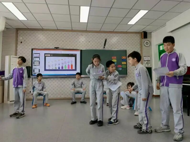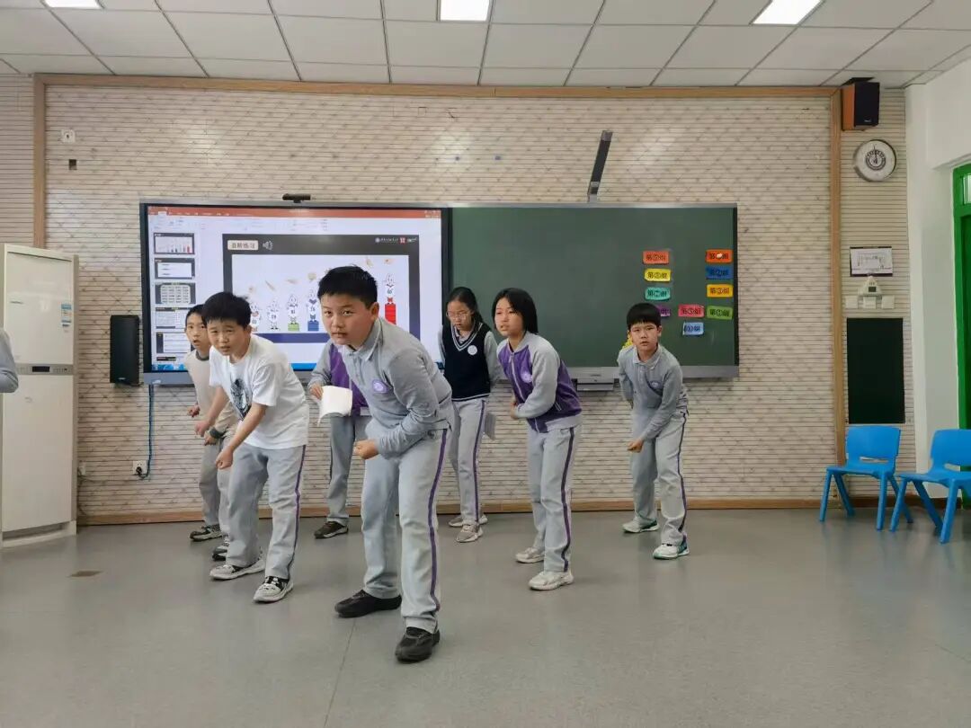 课堂上,钢琴旋律一响起,我们便踏着节奏踮起脚尖,旋转间念出排好的台词。歌声扬起时,肢体随之起伏,连剧情中的小冲突,也融入高低错落的旋律里。我们尝试让角色边舞边唱,让舞步紧随故事推进,指尖的音符、舒展的肢体与生动的情节交织,如串起一串彩珠,每一刻都有新创意萌发,真是奇妙极了!
