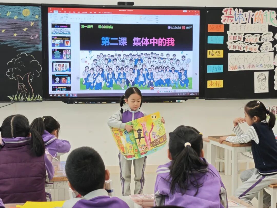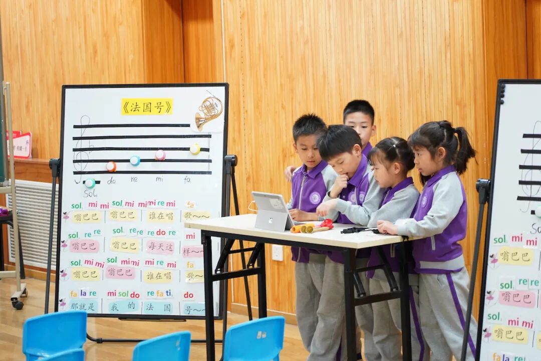 听!音乐教室总飘出快乐的音符,我们在课堂上学唱新歌,了解不同国家的音乐文化。我们练习着均匀的呼吸与和谐的发声,一遍遍打磨着节奏和音准。当大家的声音完美融合的那一刻,整个世界都在发光!