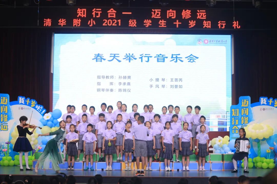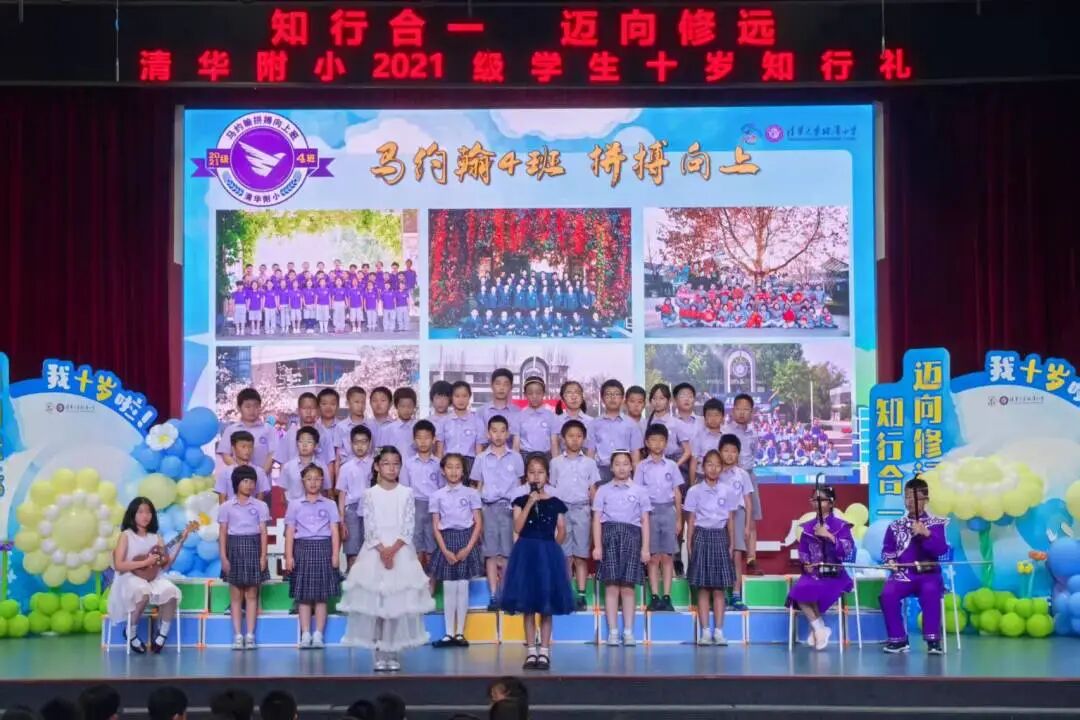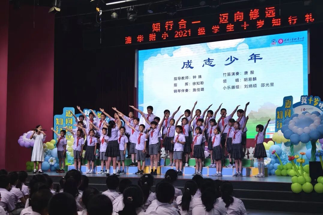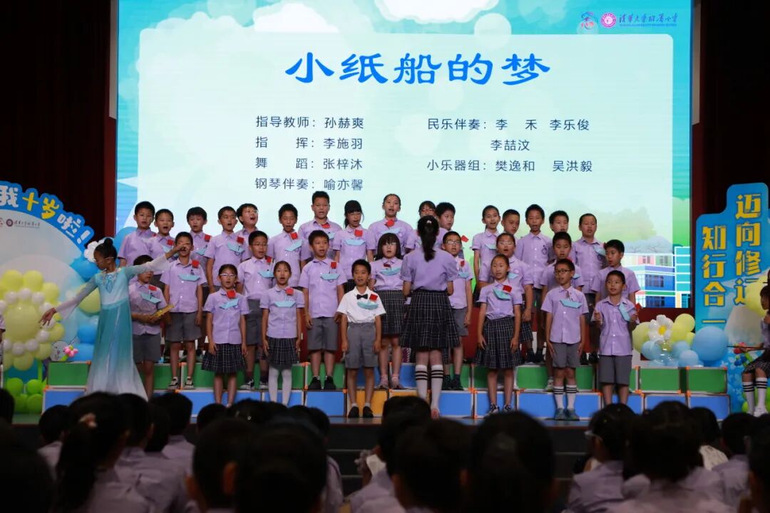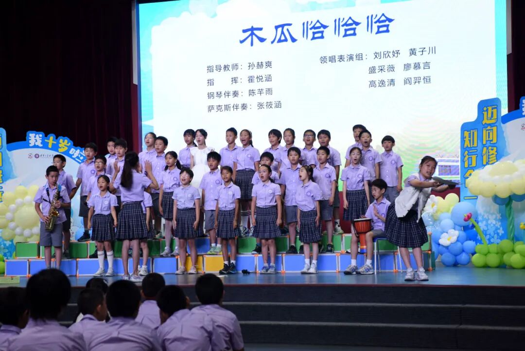 在仪式上,我们用竹笛奏响成长的序曲,在音乐的世界里尊重彼此,诚实守信、知行合一。在四年级十岁天空主题课程中,我们唱着班级的专属旋律,用音符编织年级的成志梦想,班级合唱让十岁的天空,回荡着最动人的成长乐章。