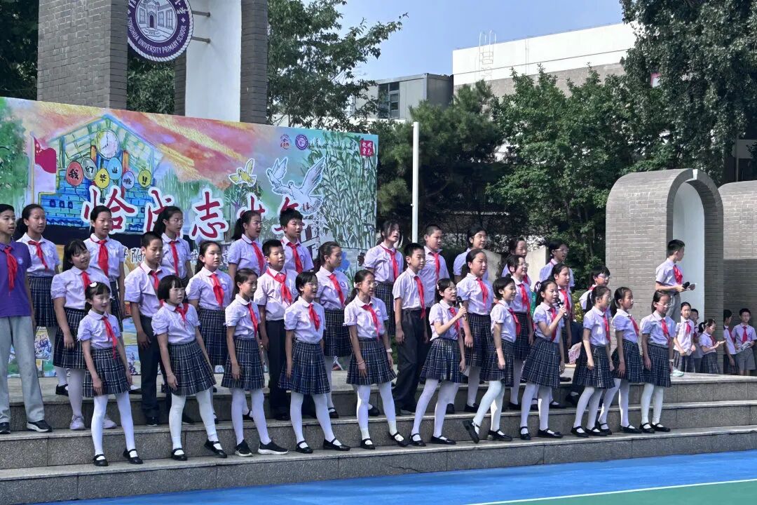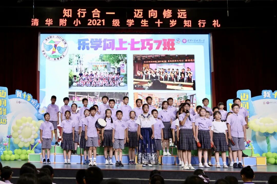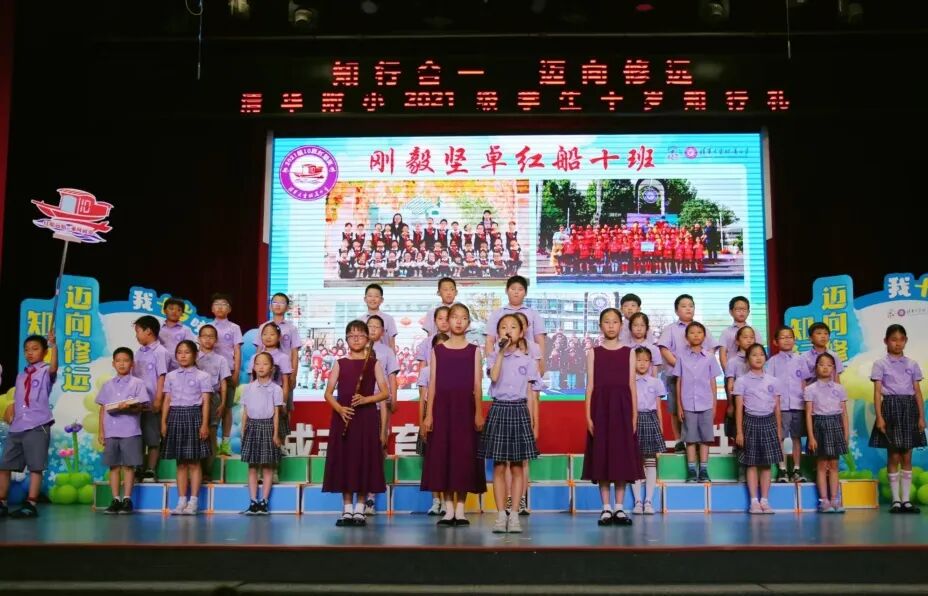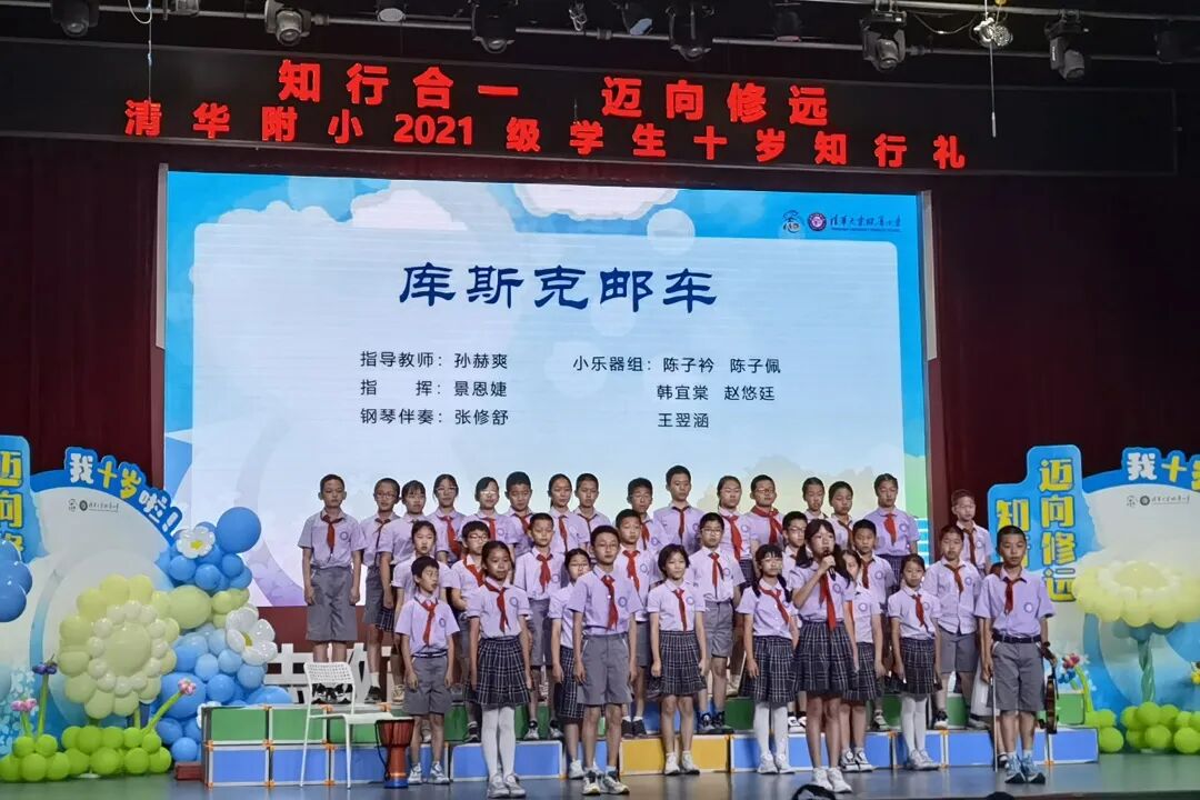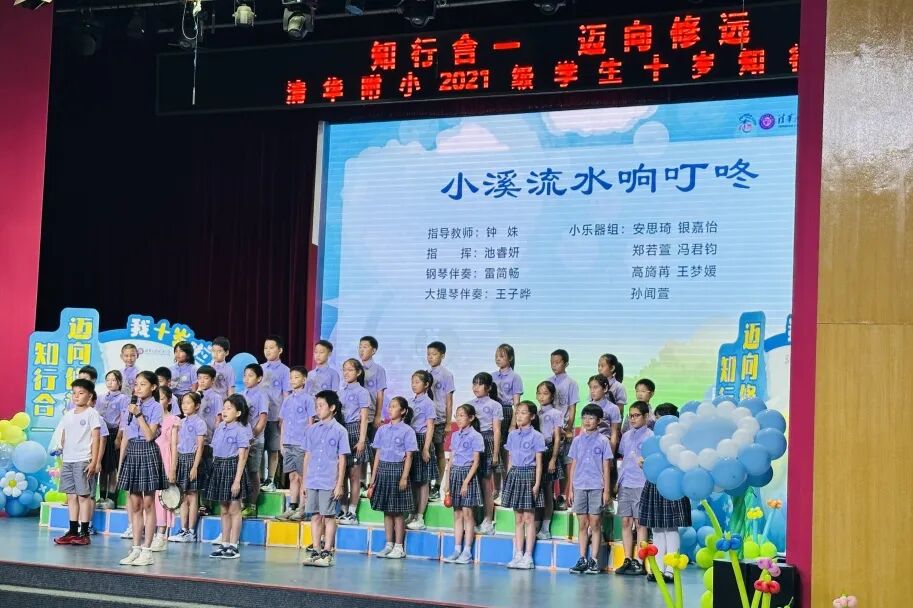 在仪式上,我们用竹笛奏响成长的序曲,在音乐的世界里尊重彼此,诚实守信、知行合一。在四年级十岁天空主题课程中,我们唱着班级的专属旋律,用音符编织年级的成志梦想,班级合唱让十岁的天空,回荡着最动人的成长乐章。
