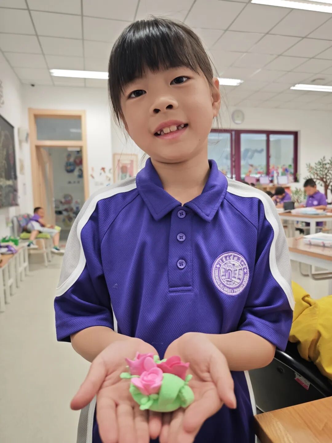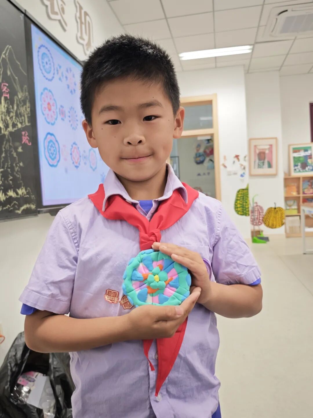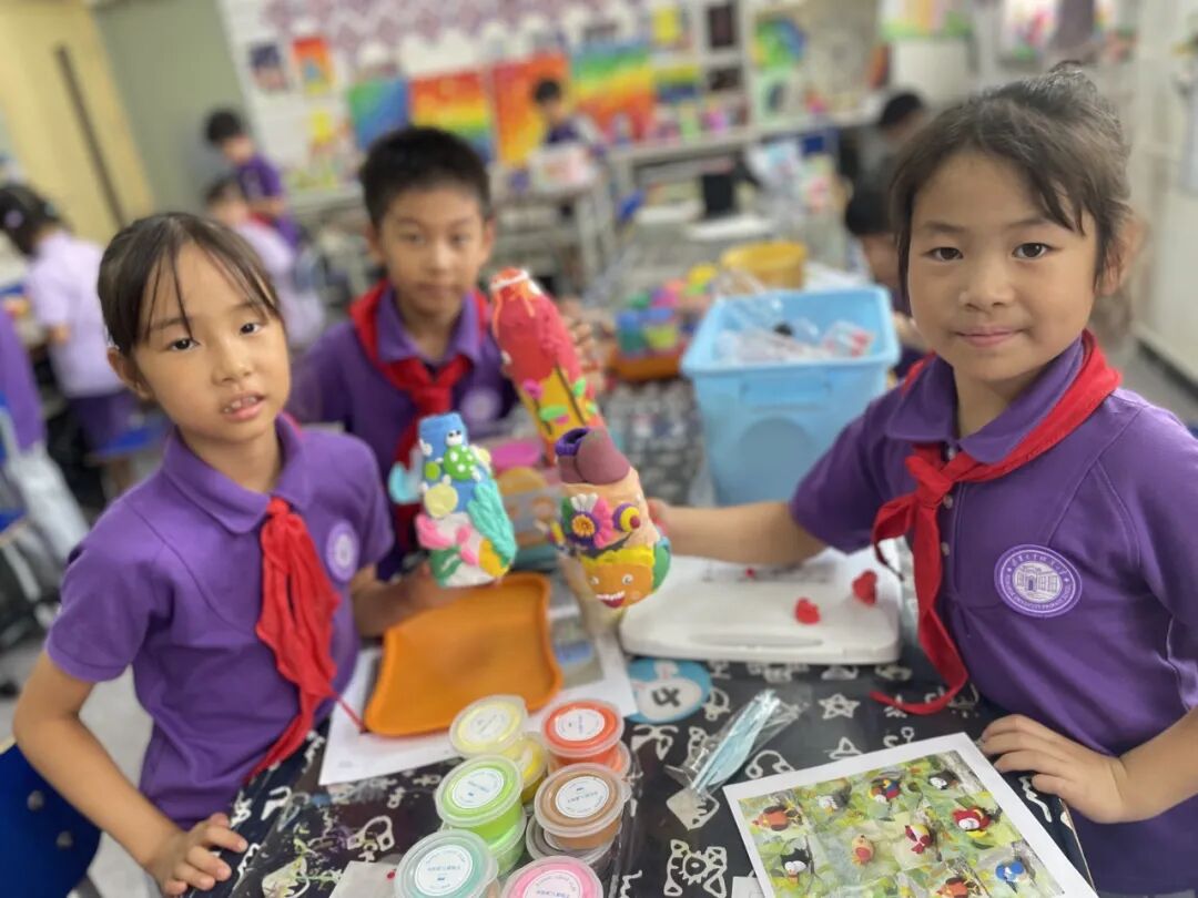 我们的艺术三进阶课程:启程入队课程,通过艺术发现自己;成人礼仪式,徽标设计、班级合唱发展自己;修远毕业课程,艺术大展成就自己。