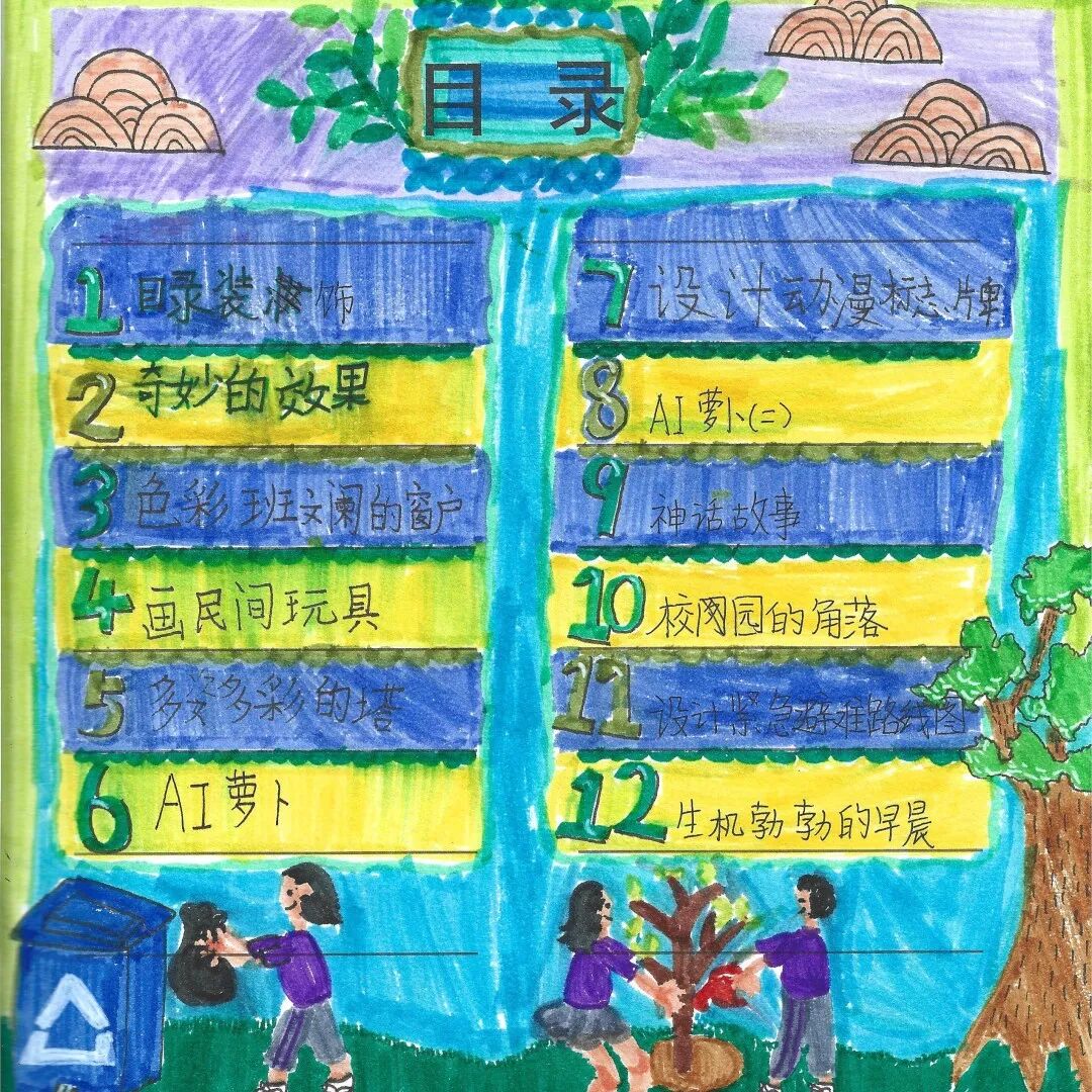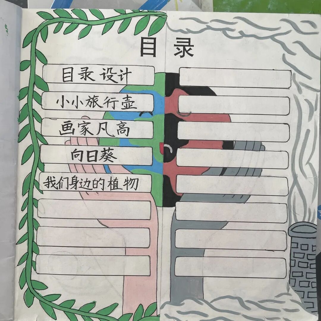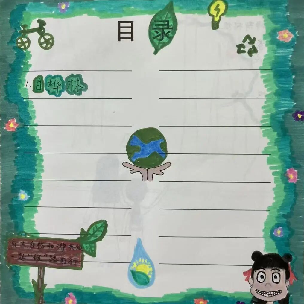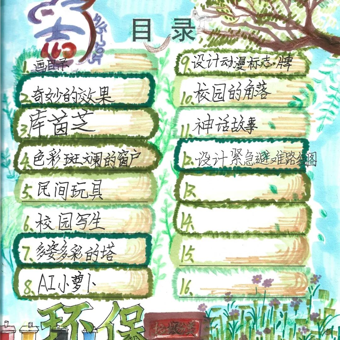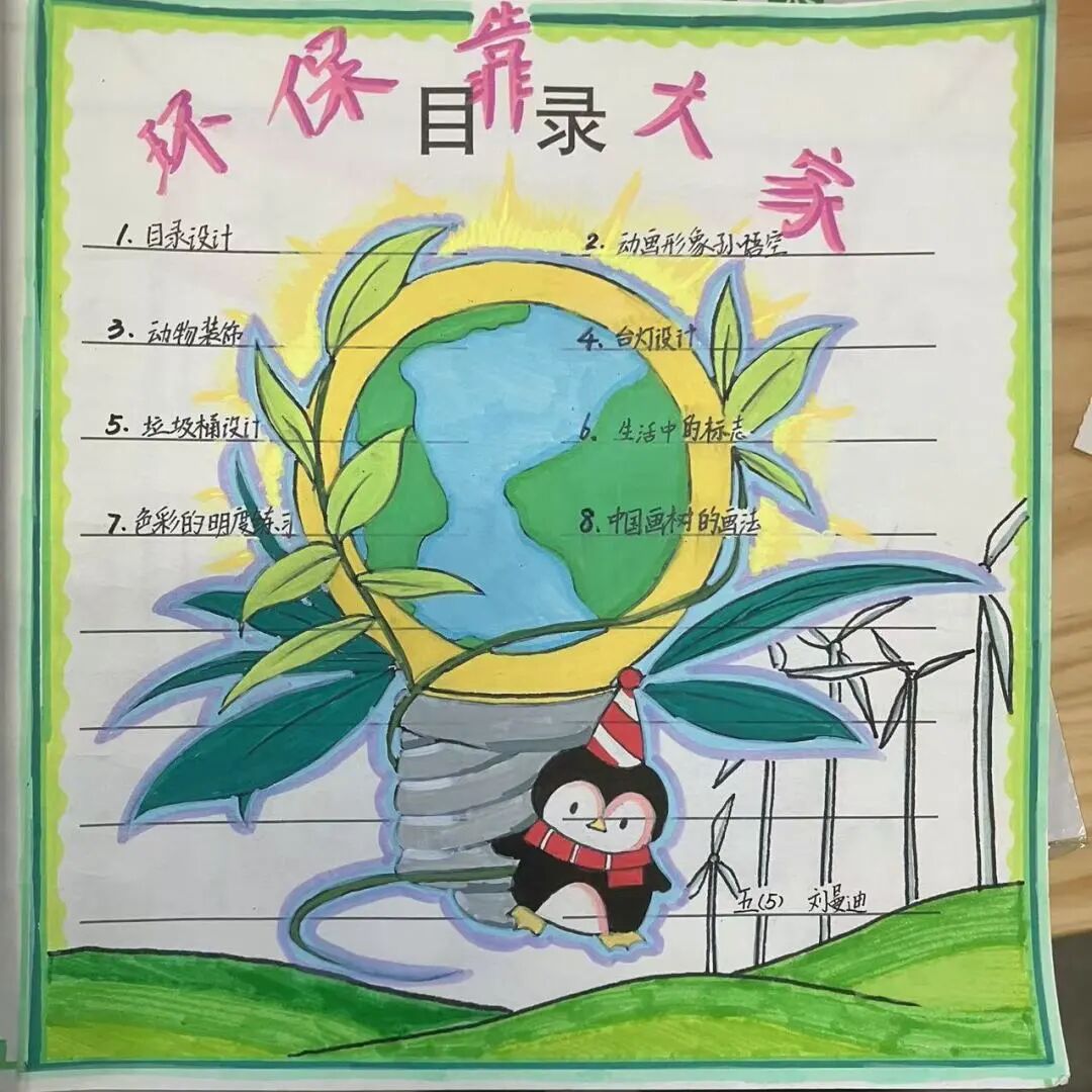 今年学校年度主题是“‘碳’路前行,学会与自然共处”,从艺术教学到美育课程,再到美育环境浸润,在“开学玩半天”、环保目录设计、校园环保写生、装饰我们的低碳校园、唱响绿色环保理念等美育活动中,我们做环保志愿者,践行低碳环保理念。