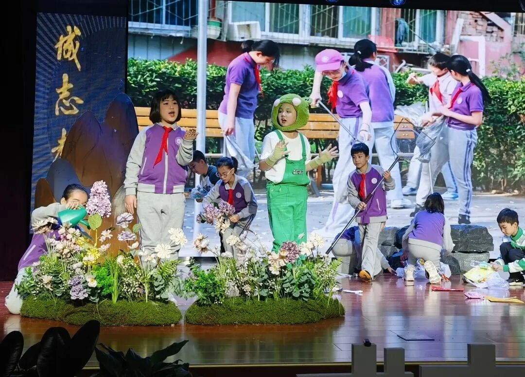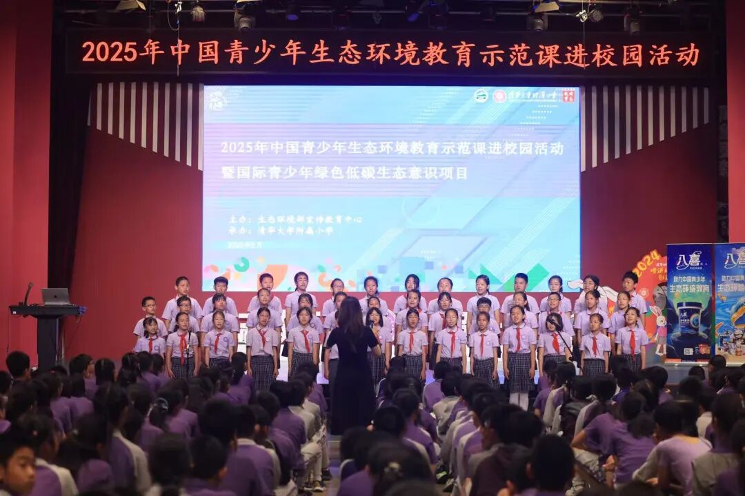 在生态环境教育进校园活动中,我们用歌声倡导环保理念