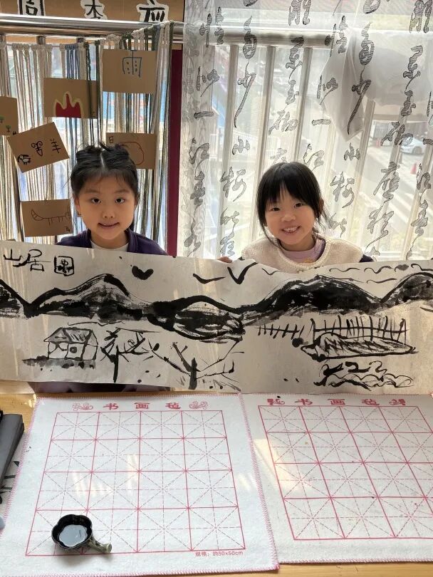 书画不分家,人人体验佳。在美术课上我们撰写艺术笔记,进行篆书的字形创作,在书法课上,我们了解龙鳞装的装订设计,篆刻有意思的美术图像,相得益彰,书画同源。